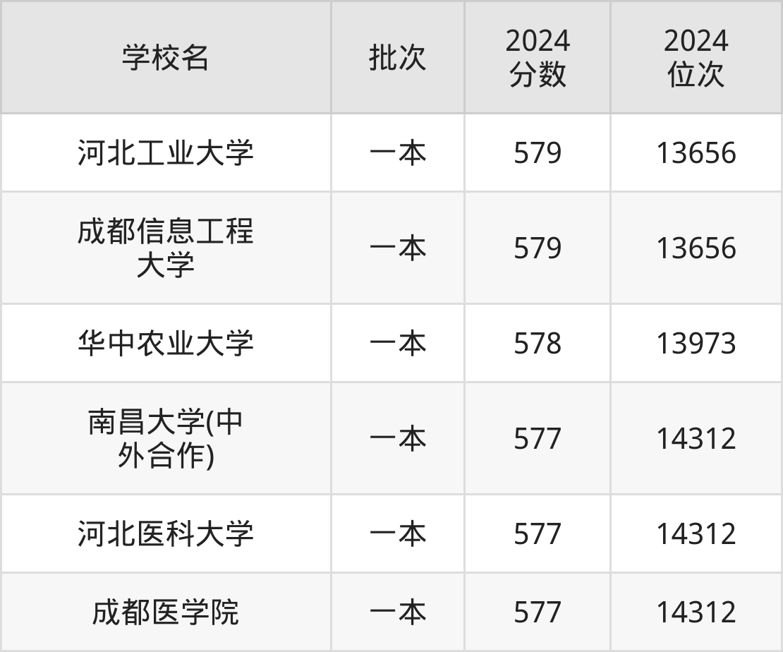2024年云南高考理科577分(13974名~14312名)能上的大学有成都医学院、南昌大学(中外合作)、河北医科大学。