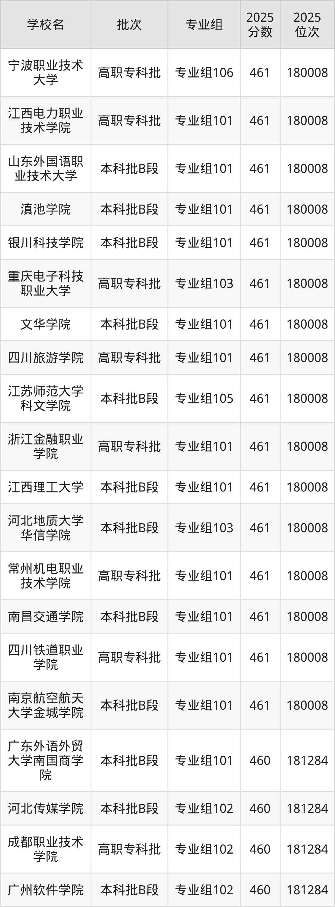 另外录取位次低于该区间(较稳妥)的有西南交通大学希望学院专业组103(182565名)、西安财经大学行知学院专业组102(182565名)等;录取位次高于该区间(可冲)的有南京航空航天大学金城学院专业组101(180008名)、江西电力职业技术学院专业组101(180008名)等。