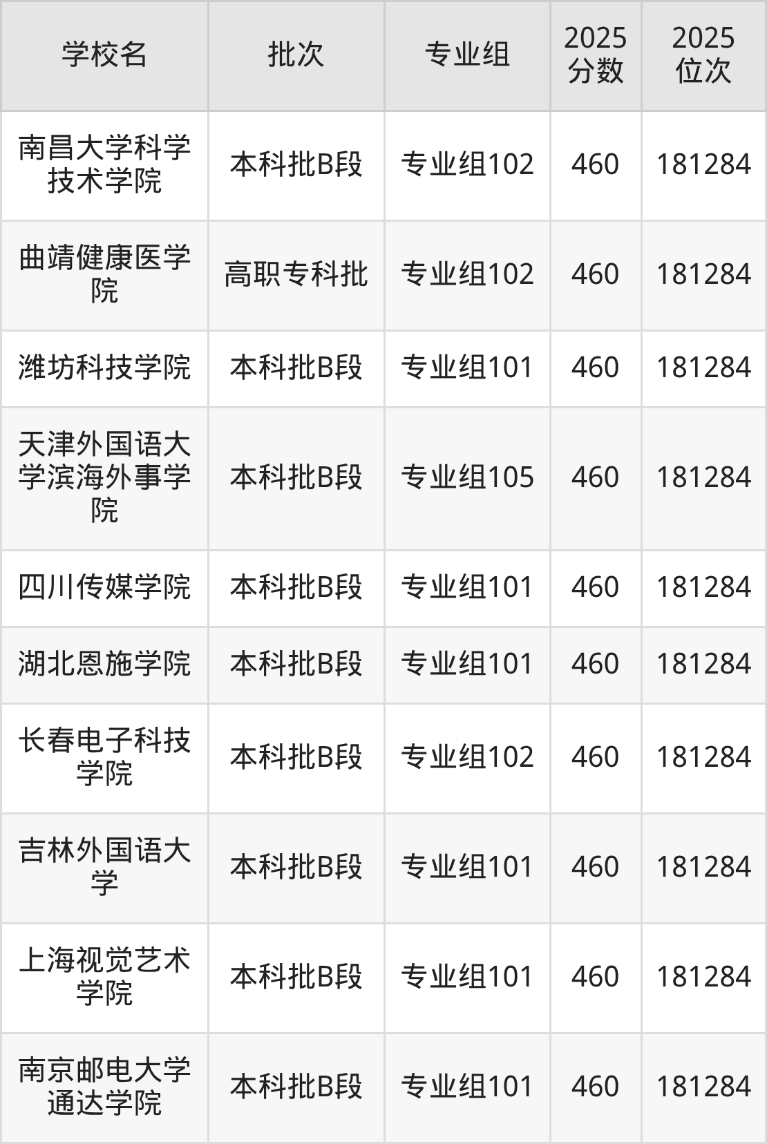这些都是2026年高考物理类180009名~181284名考生可以报考的大学,更多学校名单如下表所示: