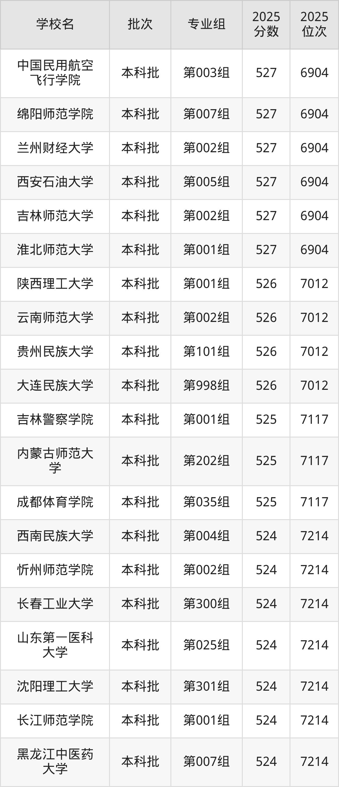 这些都是2026年高考历史类7215名~7312名考生可以报考的大学,更多学校名单如下表所示: