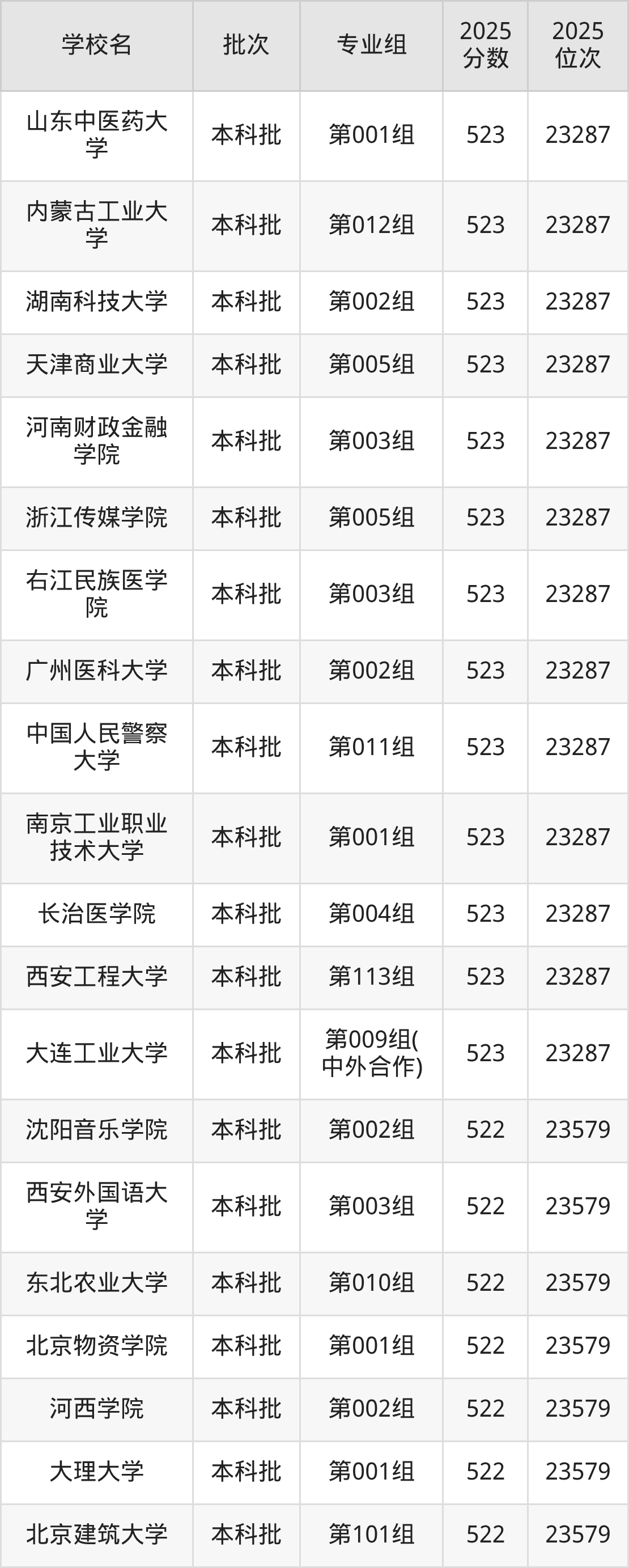 二、内蒙古523分位次排名能上的大学
