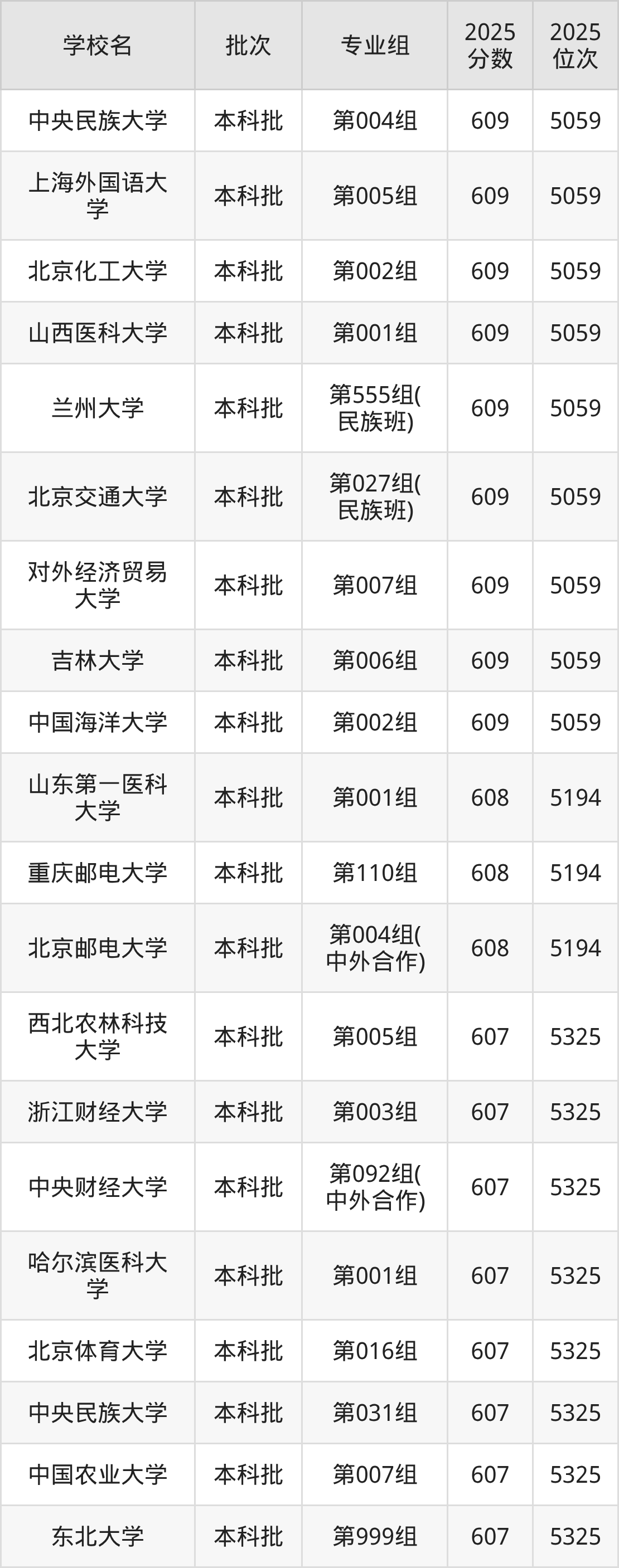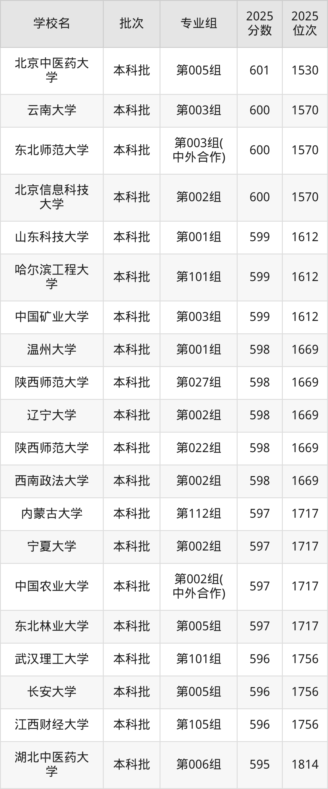 二、内蒙古605分位次排名能上的大学