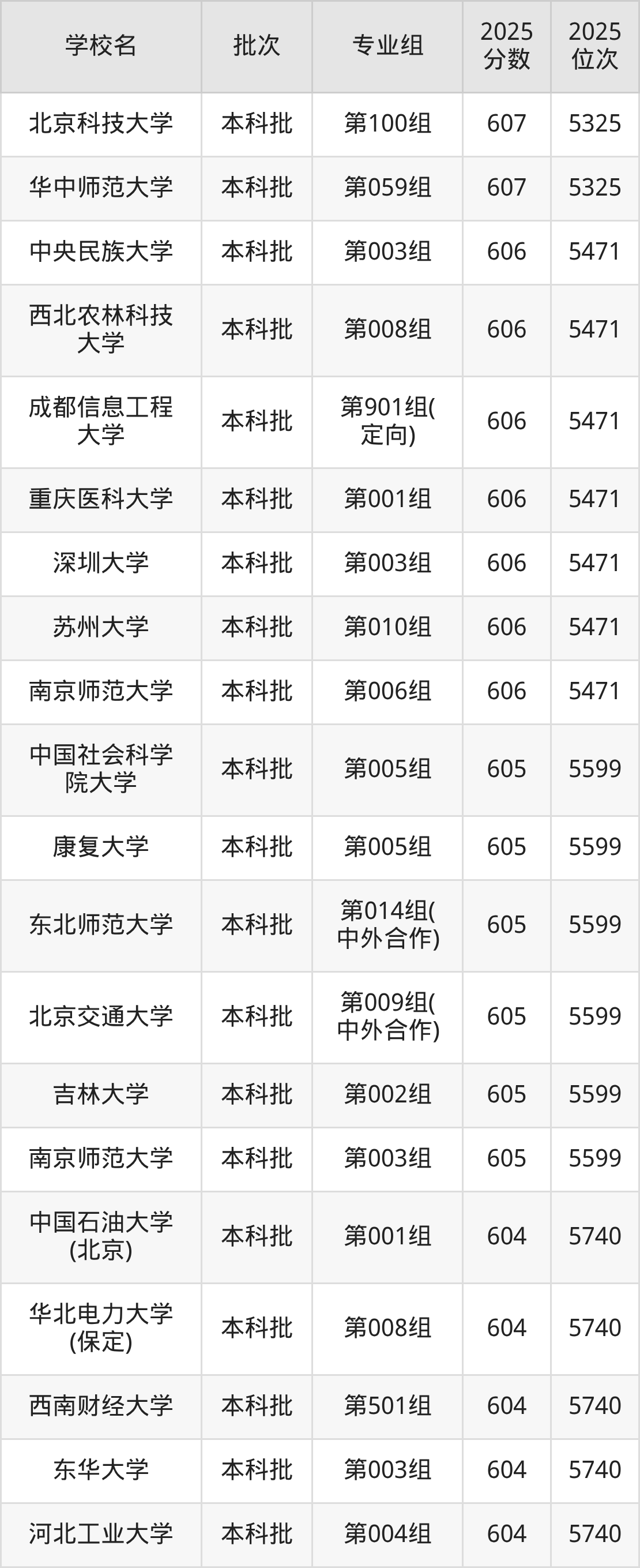 2025年内蒙古高考物理类605分(5472名~5599名)能上的大学有中国社会科学院大学第005组、康复大学第005组、南京师范大学第003组、吉林大学第002组等。