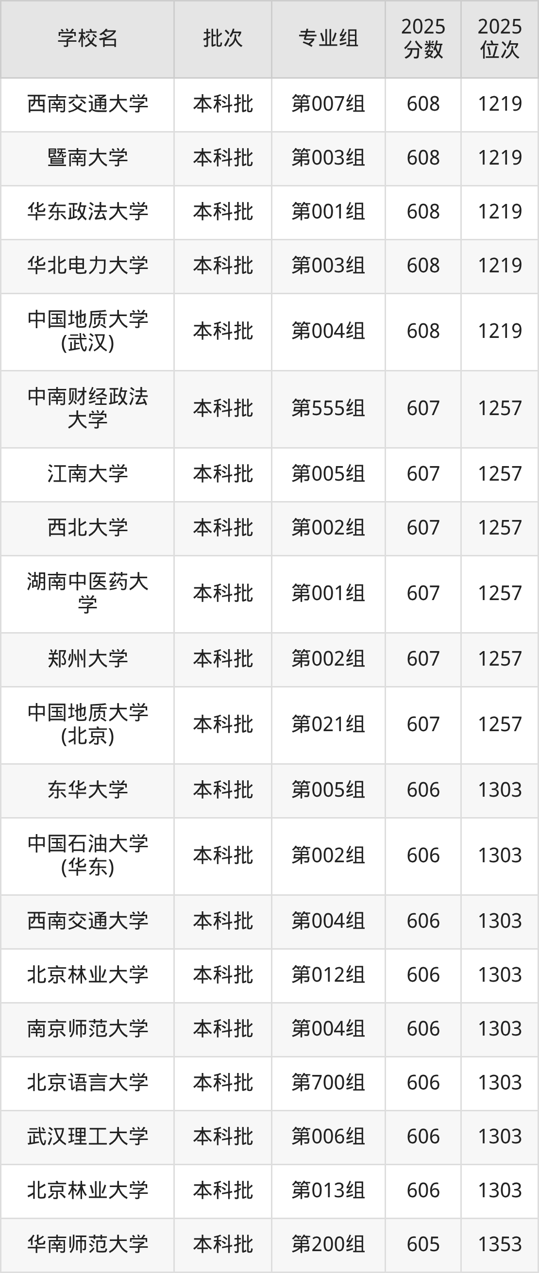另外录取位次低于该区间(较稳妥)的有河海大学第002组(1392名)、西北农林科技大学第002组(1392名)等;录取位次高于该区间(可冲)的有西南交通大学第004组(1303名)、南京师范大学第004组(1303名)等。