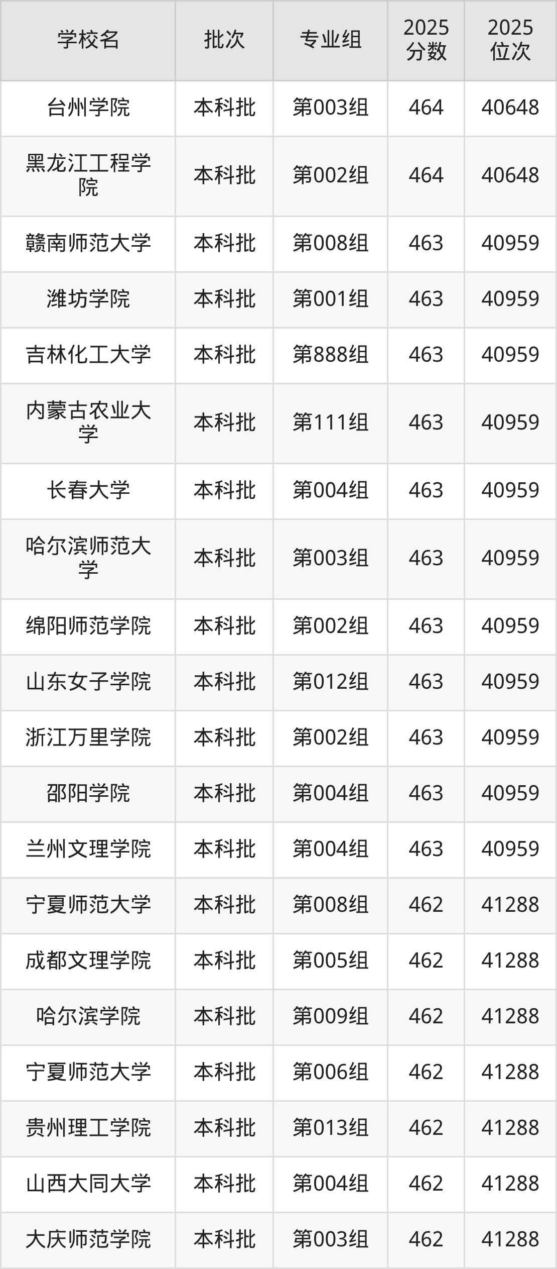 这些都是2026年高考物理类40649名~40959名考生可以报考的大学,更多学校名单如下表所示:
