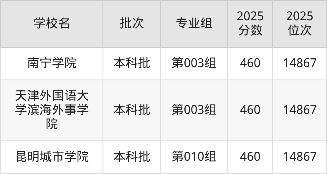 这些都是2026年高考历史类14339名~14468名考生可以报考的大学,更多学校名单如下表所示:
