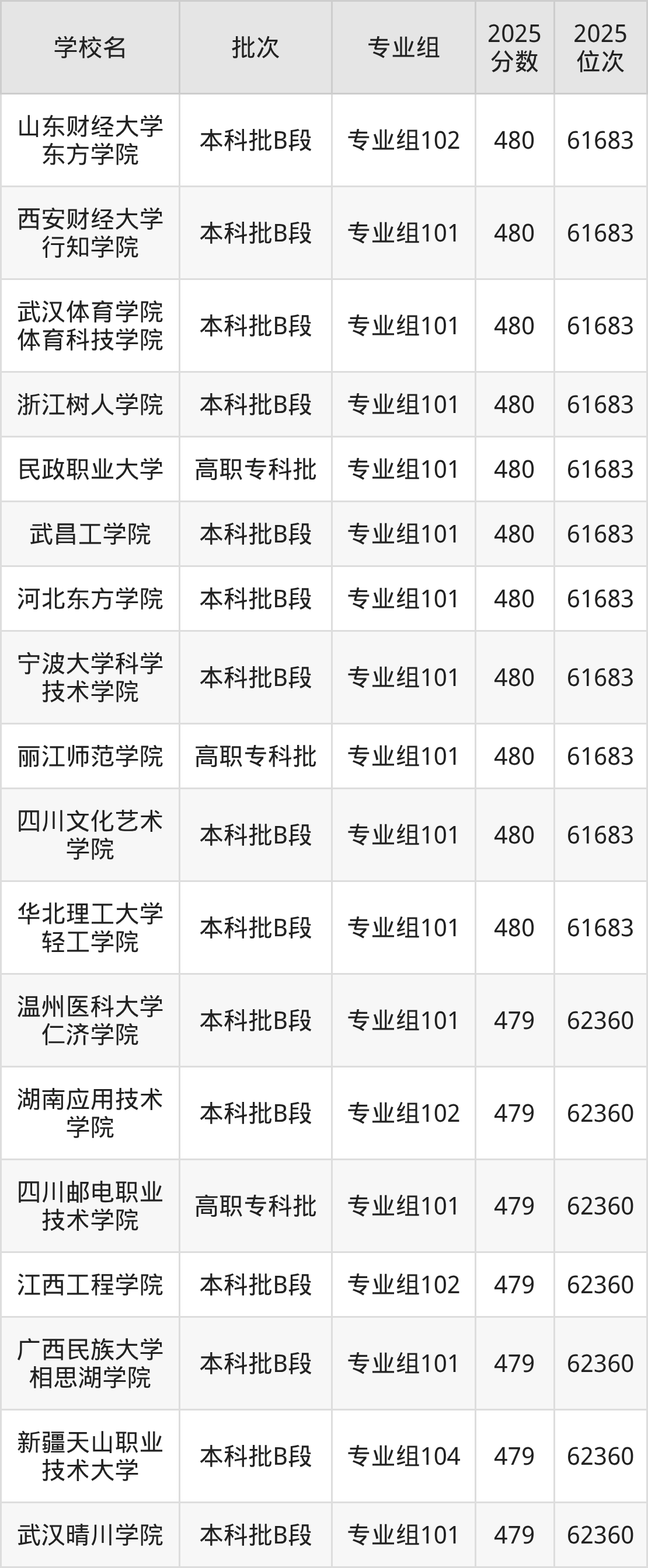 2025年四川高考历史类479分(61684名~62360名)能上的大学有湖南应用技术学院专业组102、四川邮电职业技术学院专业组101、江西工程学院专业组102、广西民族大学相思湖学院专业组101等。