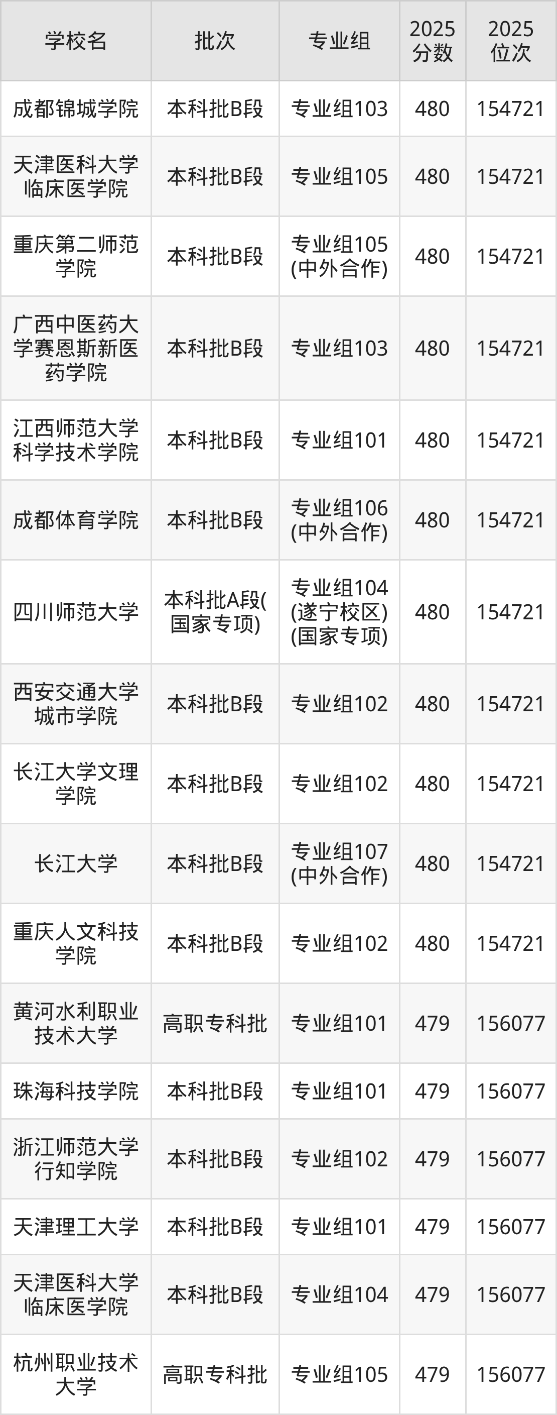 这些都是2026年高考物理类154722名~156077名考生可以报考的大学,更多学校名单如下表所示: