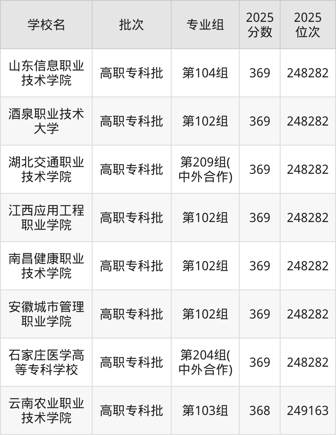 2025年湖南高考物理类368分(248283名~249163名)能上的大学有云南农业职业技术学院第103组。