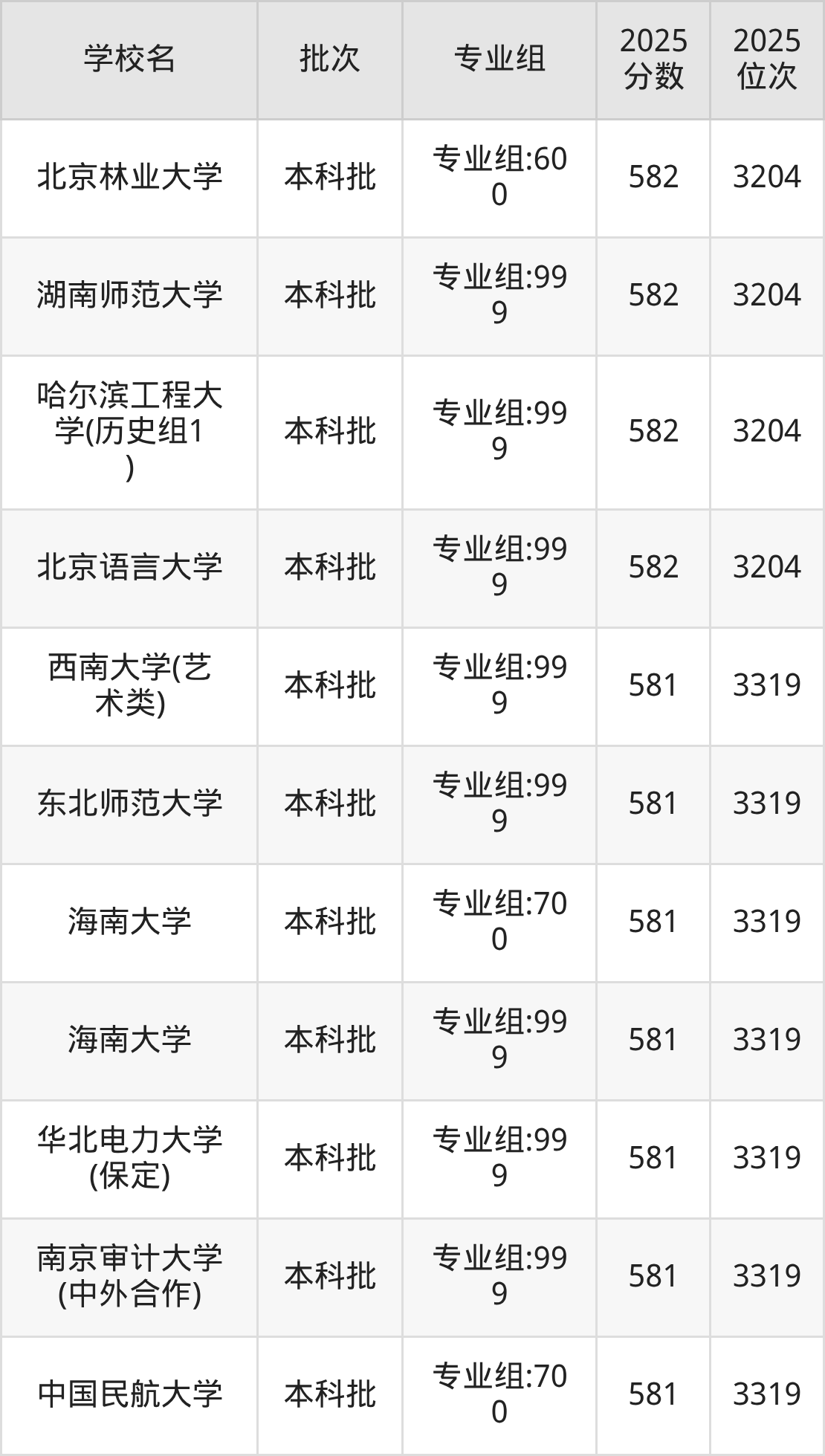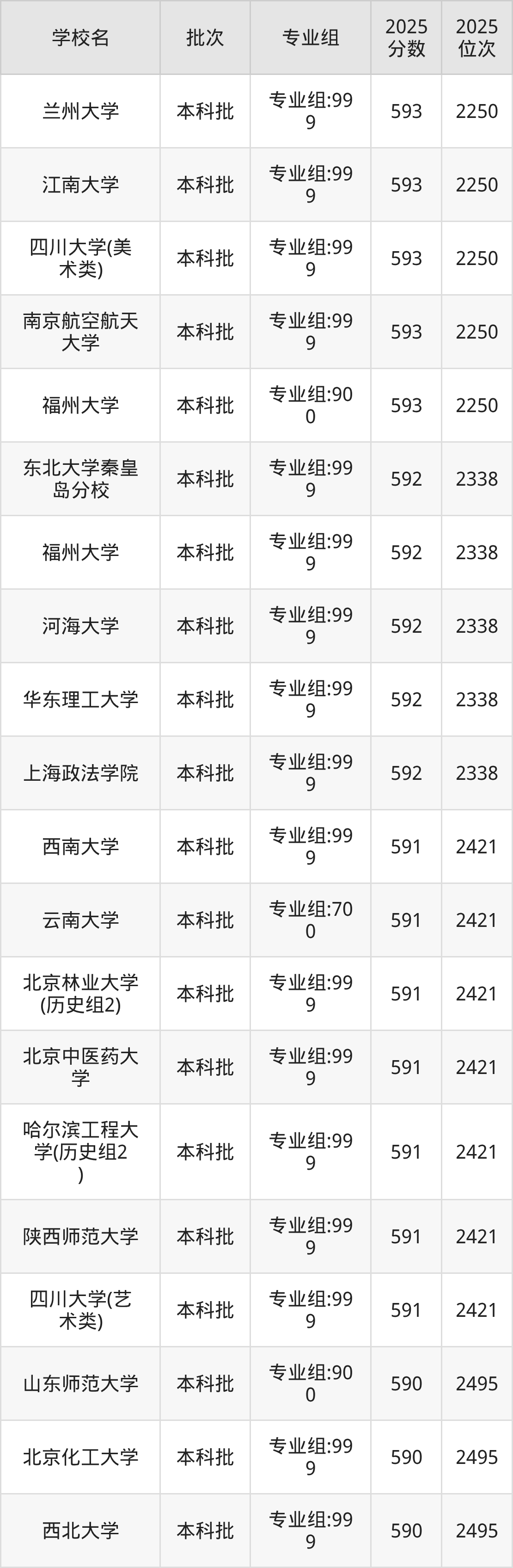 这些都是2026年高考历史类2750名~2833名考生可以报考的大学,更多学校名单如下表所示: