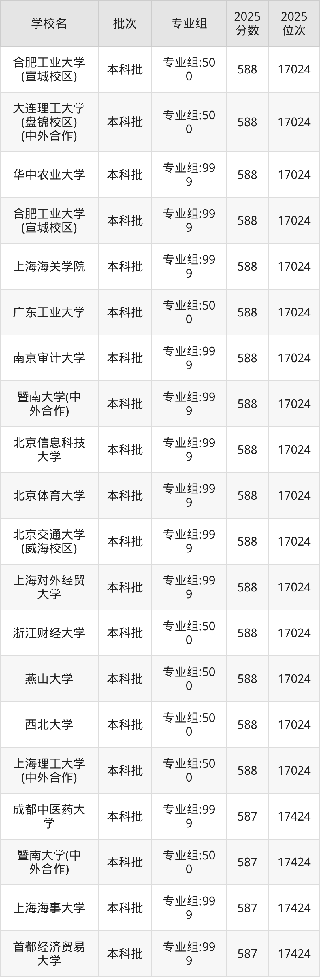 这些都是2026年高考物理类17425名~17831名考生可以报考的大学,更多学校名单如下表所示: