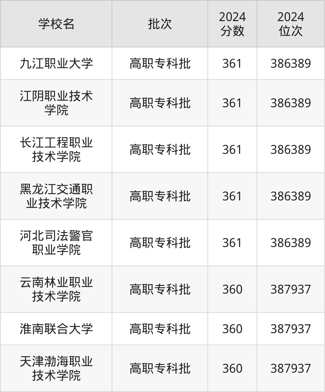 2024年河南高考理科360分(386391名~387938名)能上的大学有天津渤海职业技术学院、云南林业职业技术学院、淮南联合大学。