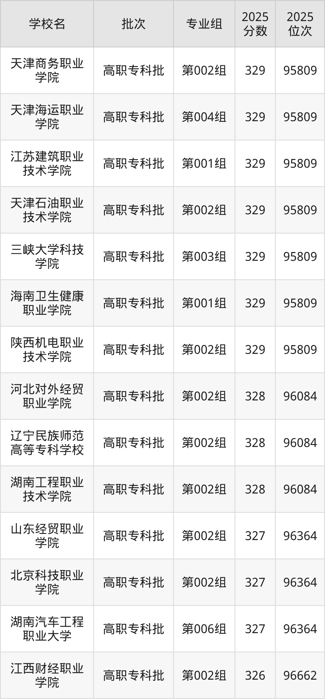 2025年黑龙江高考物理类327分(96085名~96364名)能上的大学有湖南汽车工程职业大学第006组、北京科技职业学院第002组、山东经贸职业学院第002组。