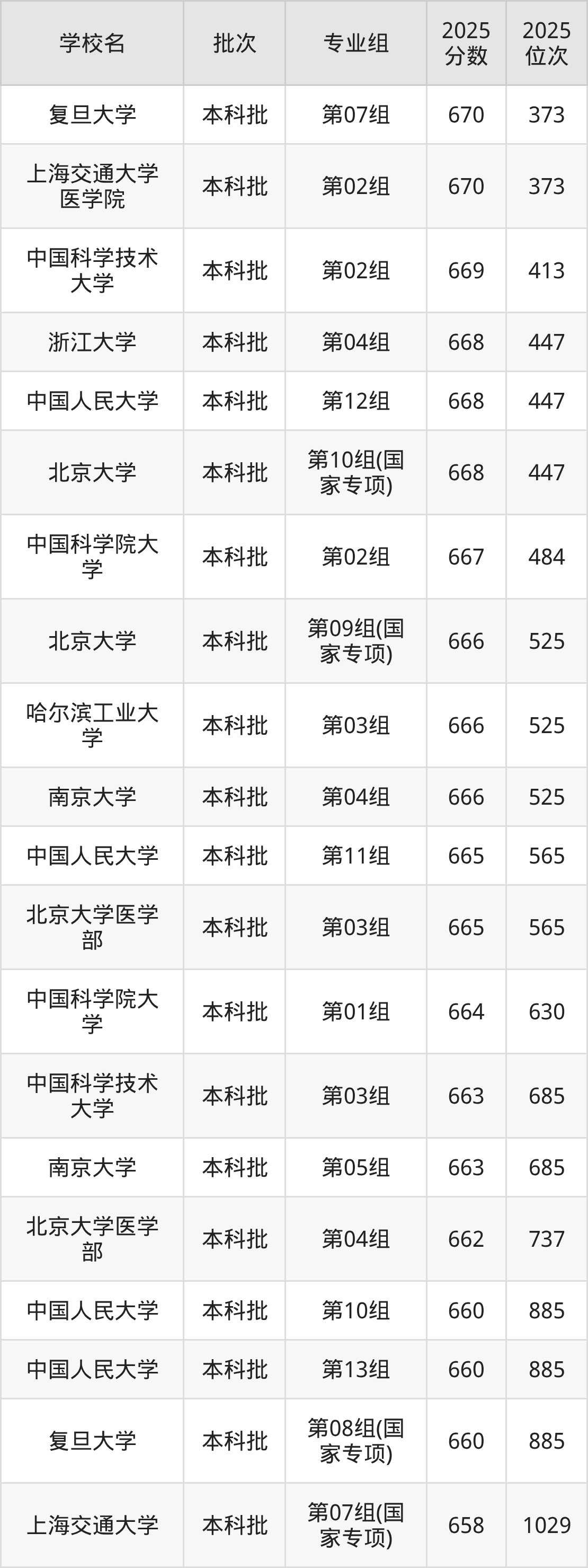 2025年湖北高考物理类660分(808名~885名)能上的大学有中国人民大学第10组、中国人民大学第13组、复旦大学第08组(国家专项)。