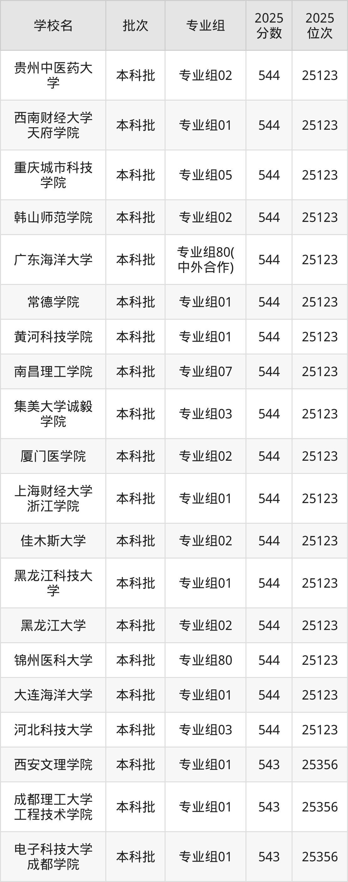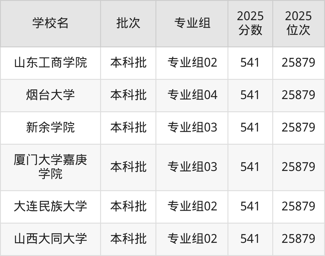 这些都是2026年高考25357名~25618名考生可以报考的大学,更多学校名单如下表所示: