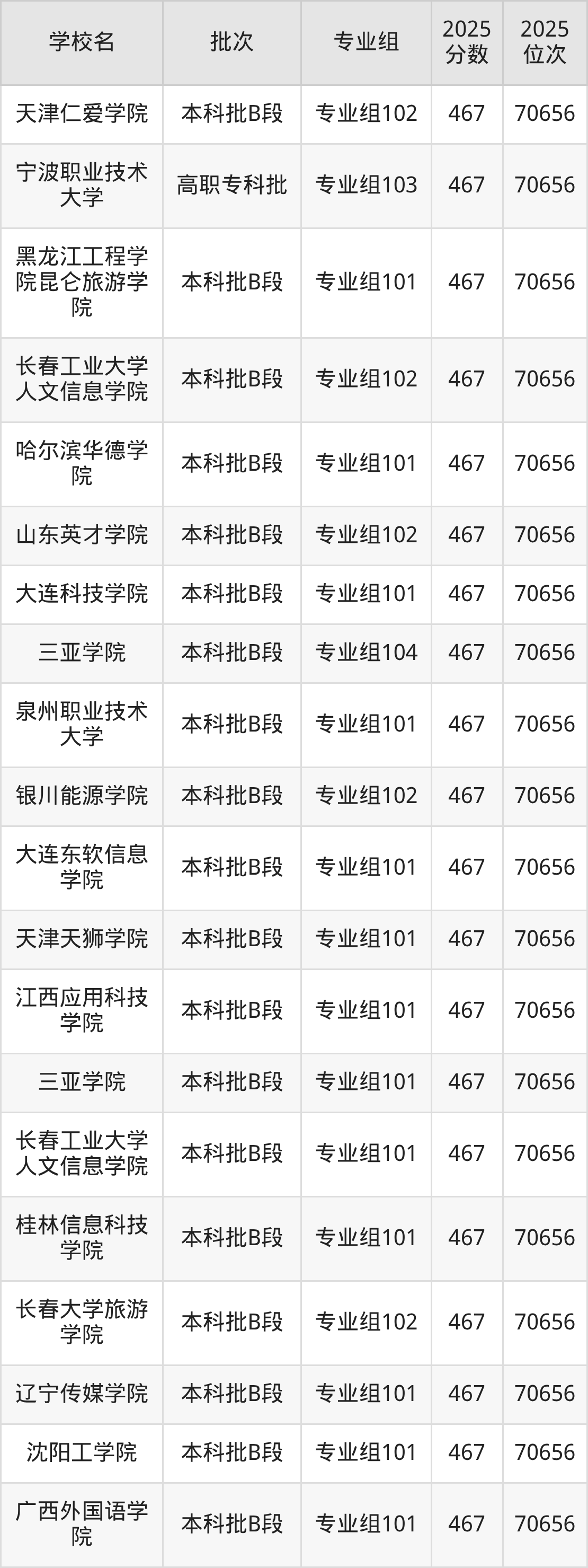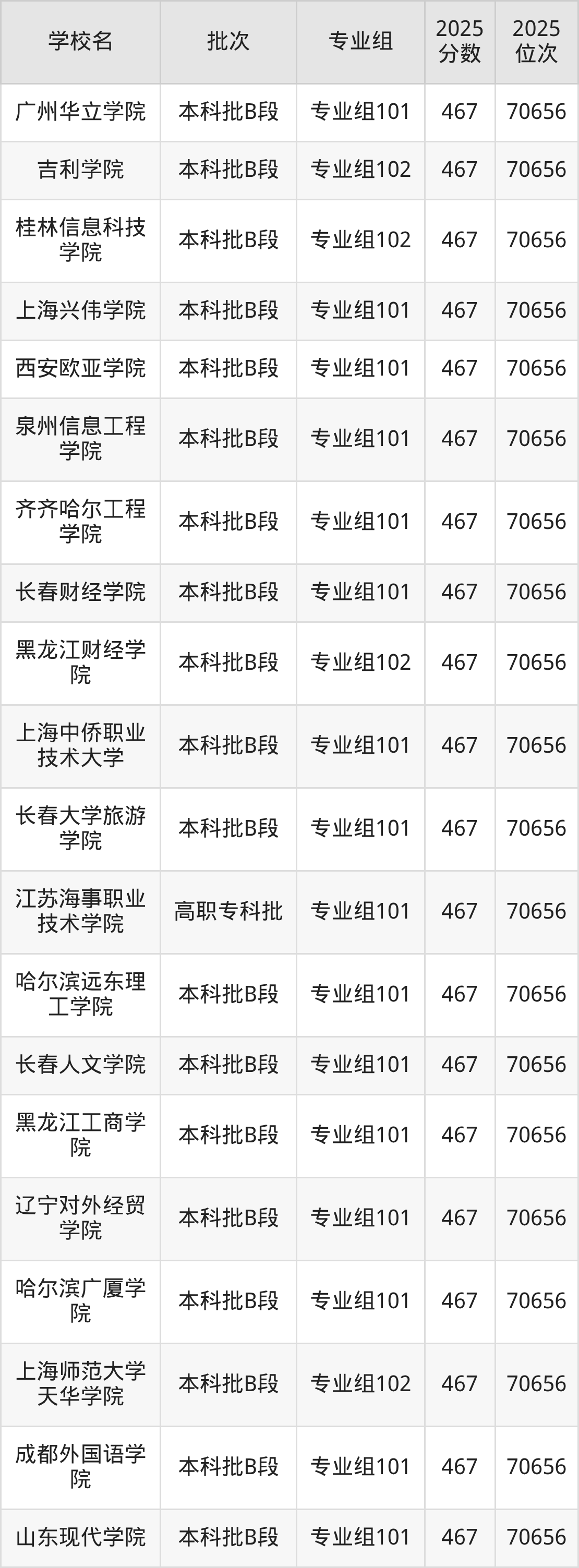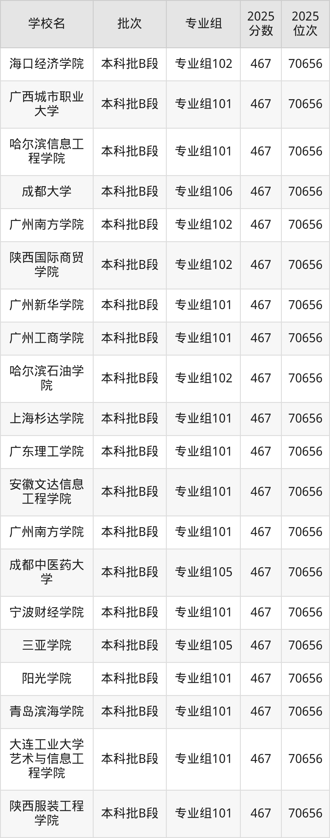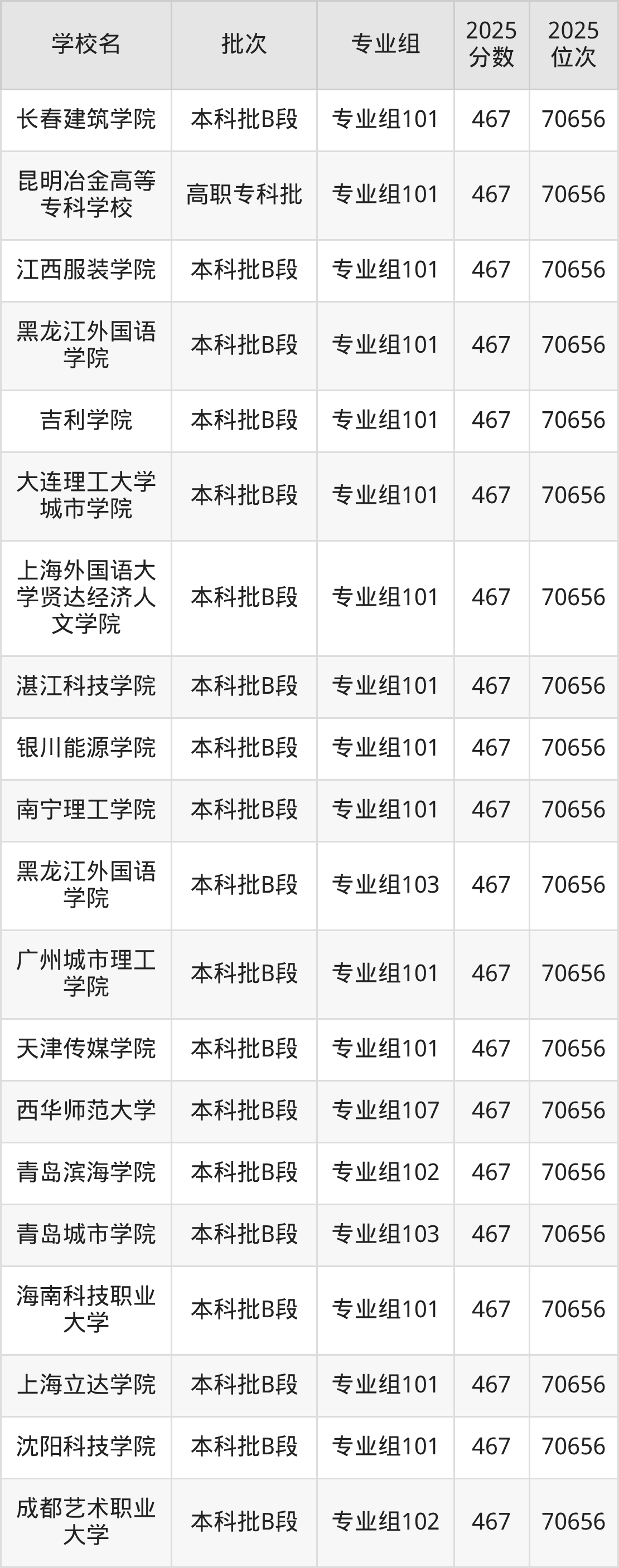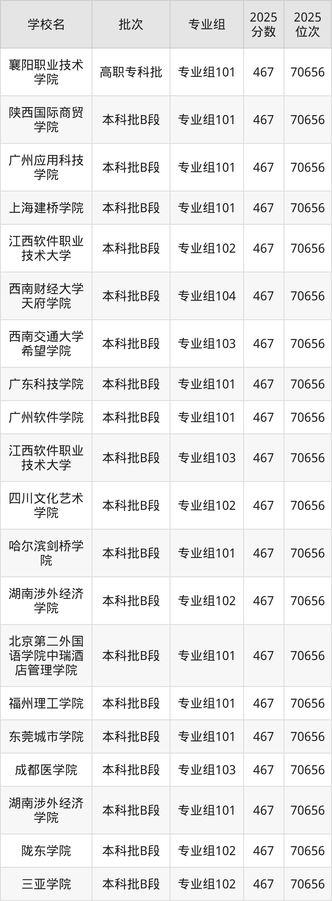 这些都是2026年高考历史类70657名~71354名考生可以报考的大学,更多学校名单如下表所示: