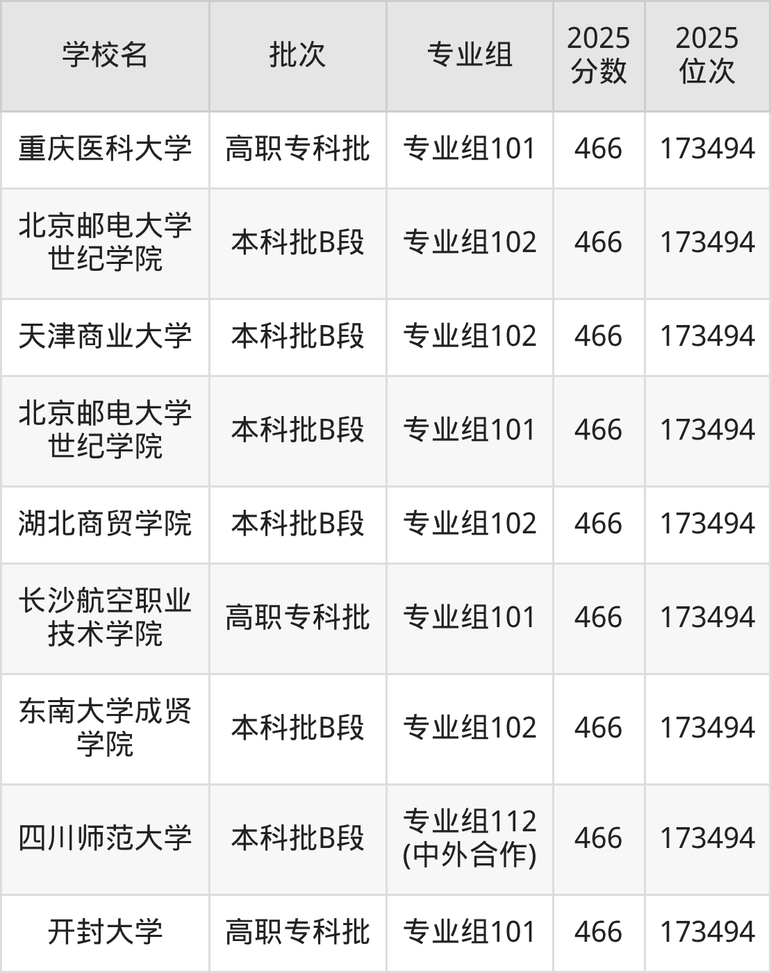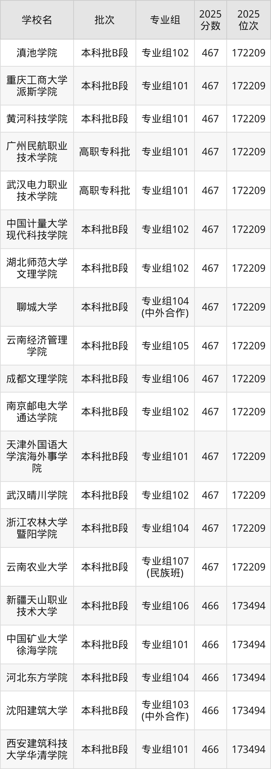 这些都是2026年高考物理类172210名~173494名考生可以报考的大学,更多学校名单如下表所示: