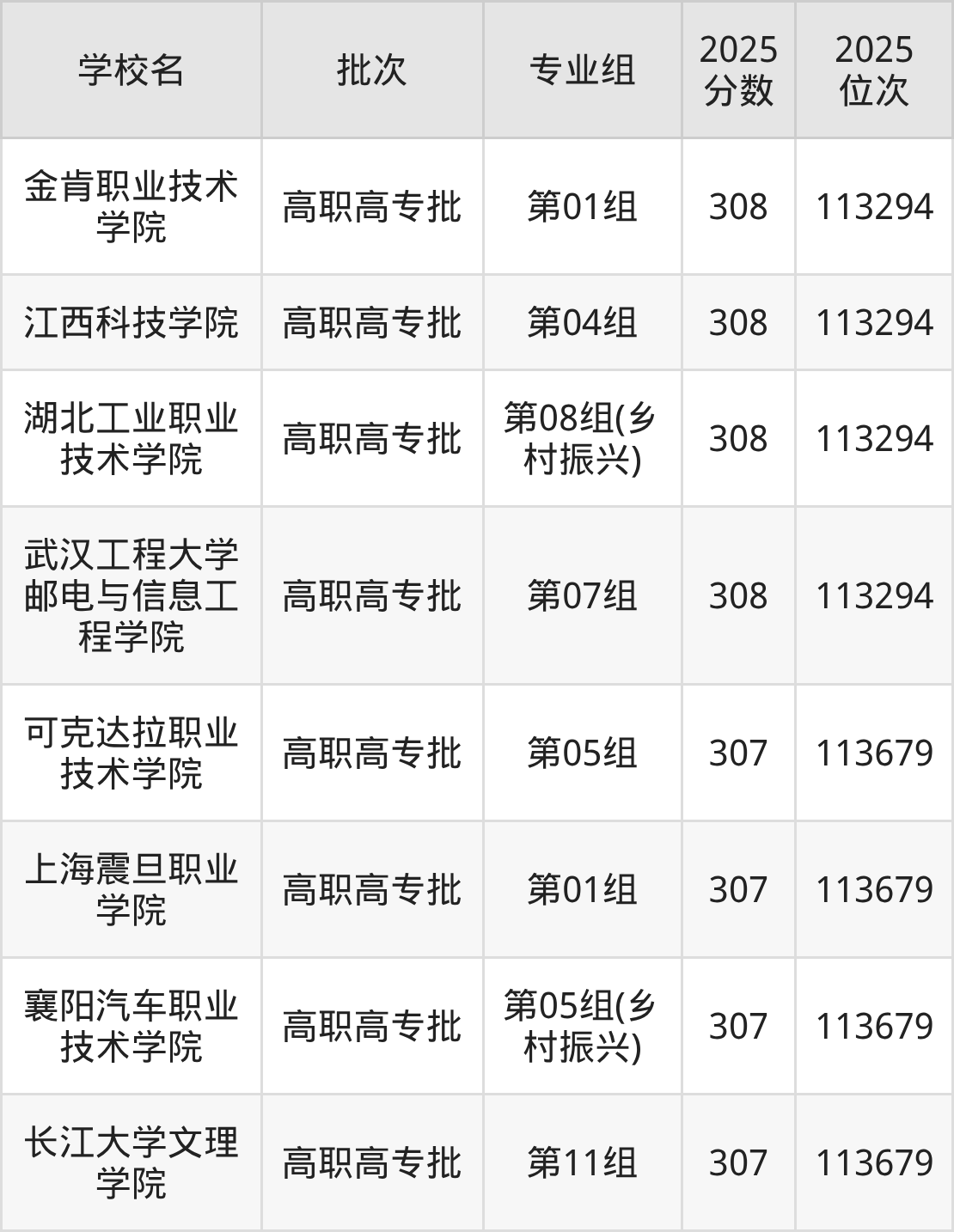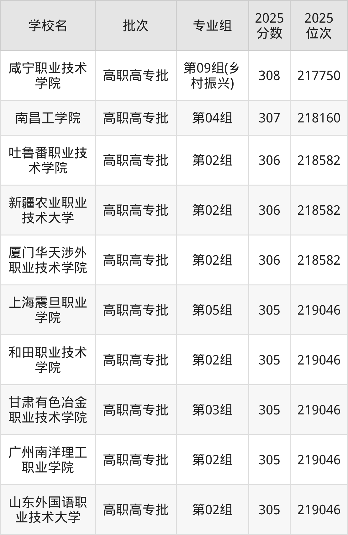 2025年湖北高考物理类306分(218161名~218582名)能上的大学有厦门华天涉外职业技术学院第02组、新疆农业职业技术大学第02组、吐鲁番职业技术学院第02组。