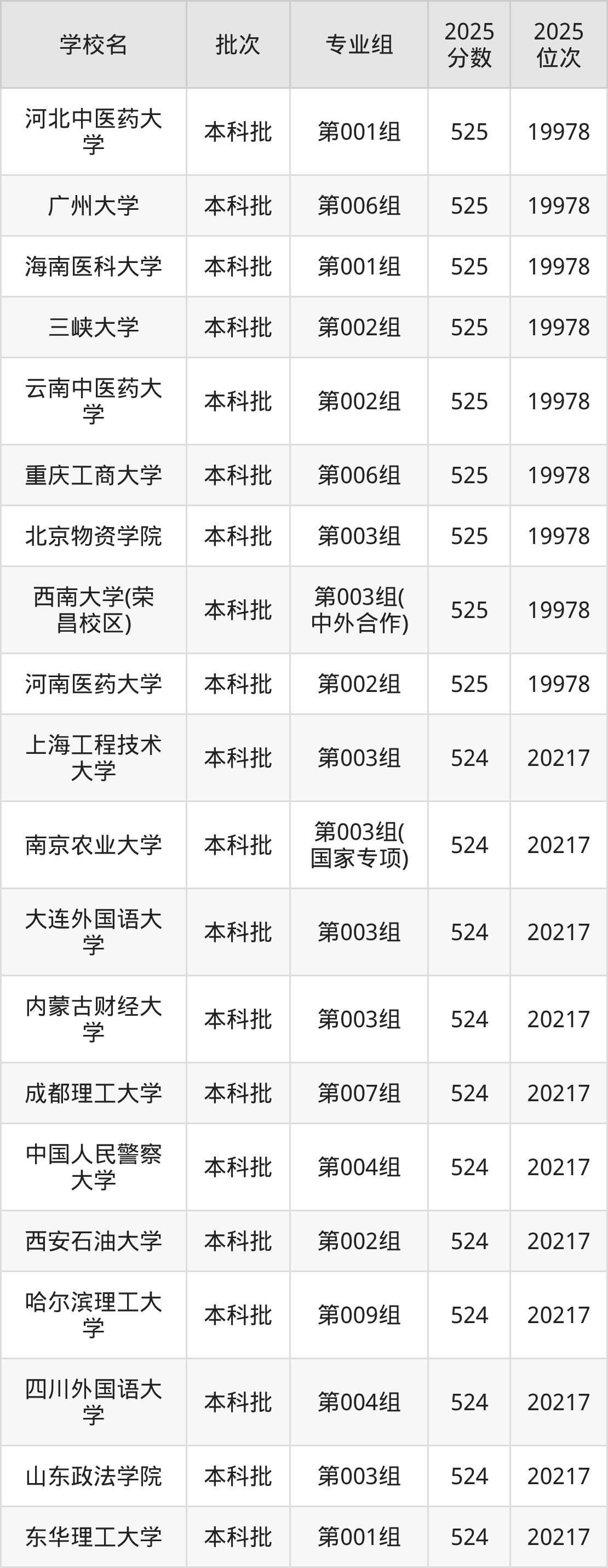 这些都是2026年高考物理类20474名~20714名考生可以报考的大学,更多学校名单如下表所示: