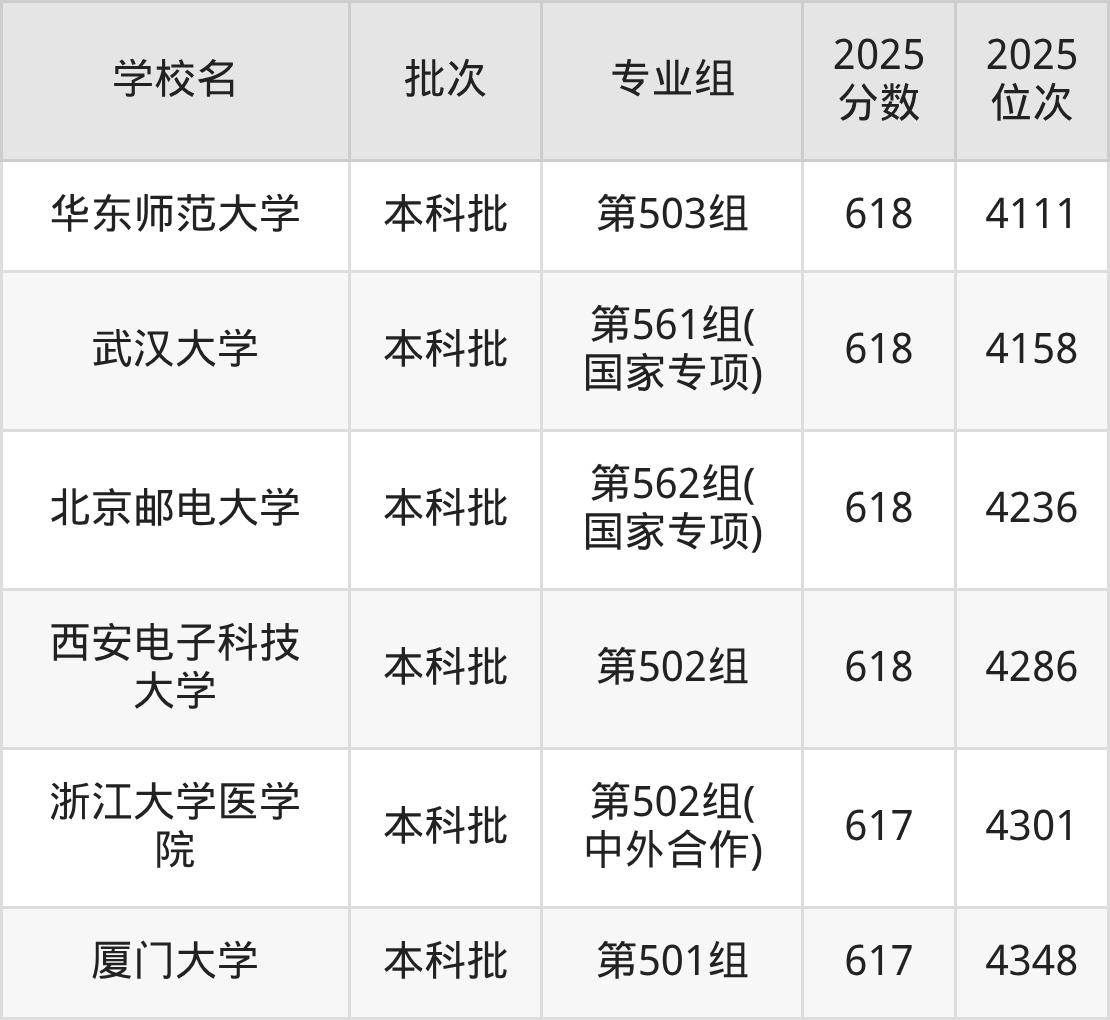 另外录取位次低于该区间(较稳妥)的有山东大学第504组(3927名)、武汉理工大学第504组(3966名)等;录取位次高于该区间(可冲)的有复旦大学上海医学院第561组(国家专项)(3680名)、苏州大学第503组(3663名)等。