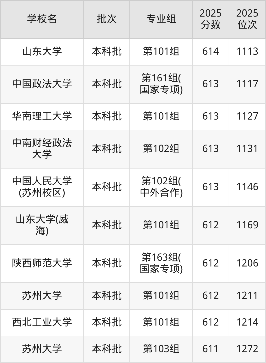 由于高考录取分数线历年波动较大,因此本文以该分数对应的位次排名为大家整理能上的大学名单。