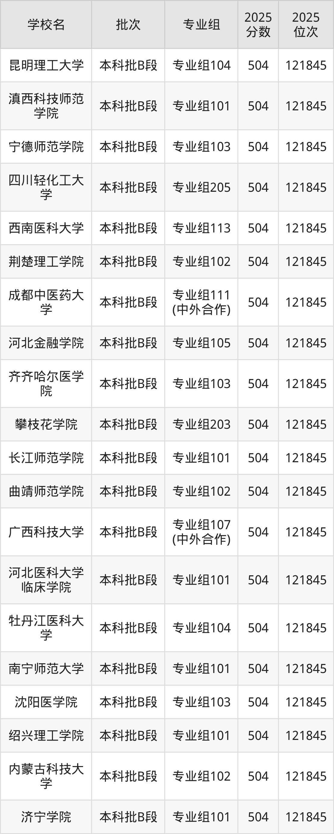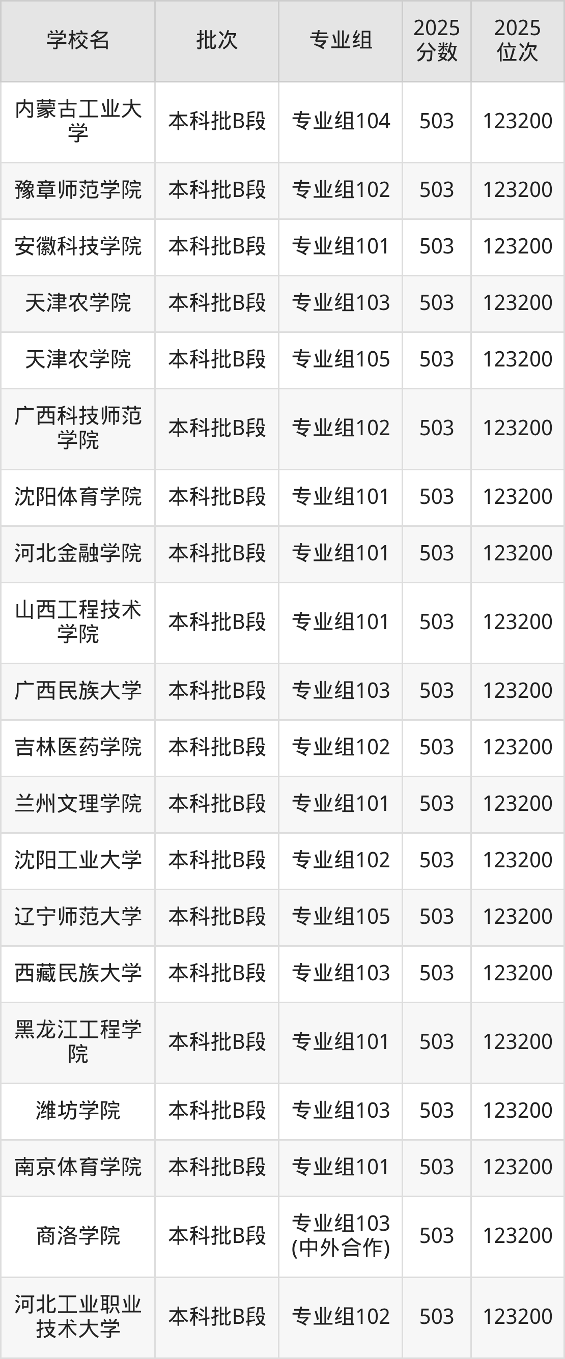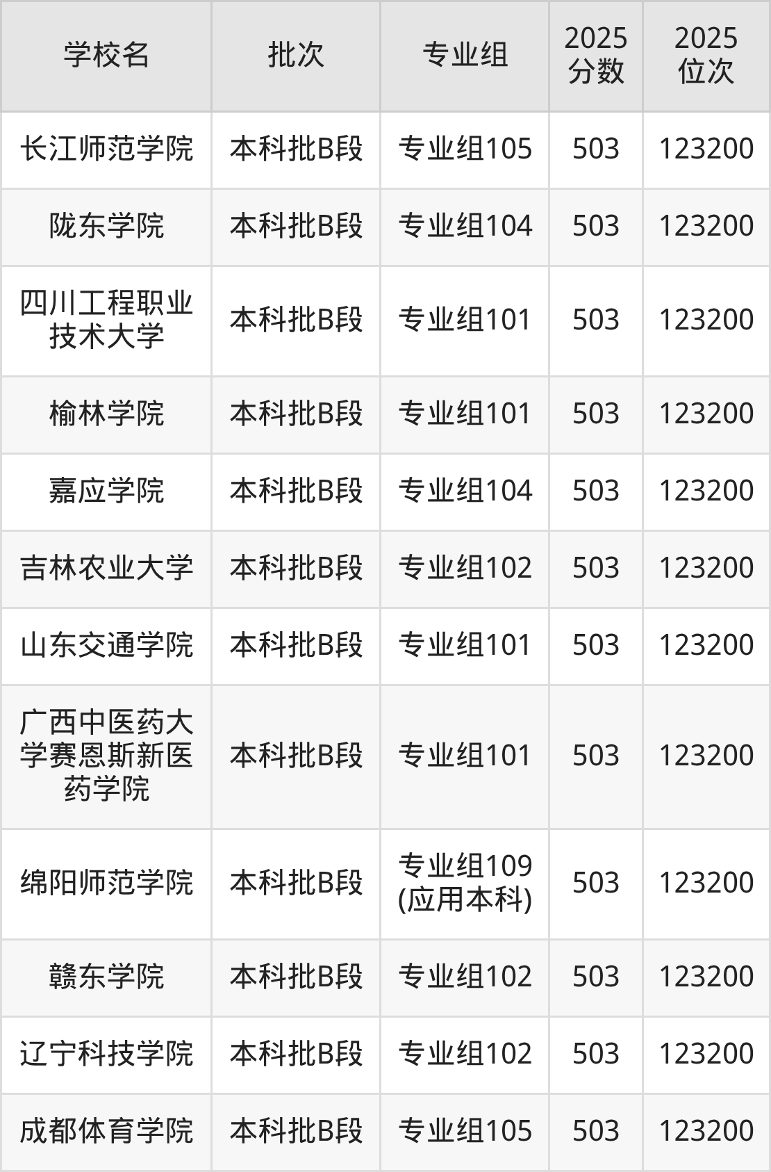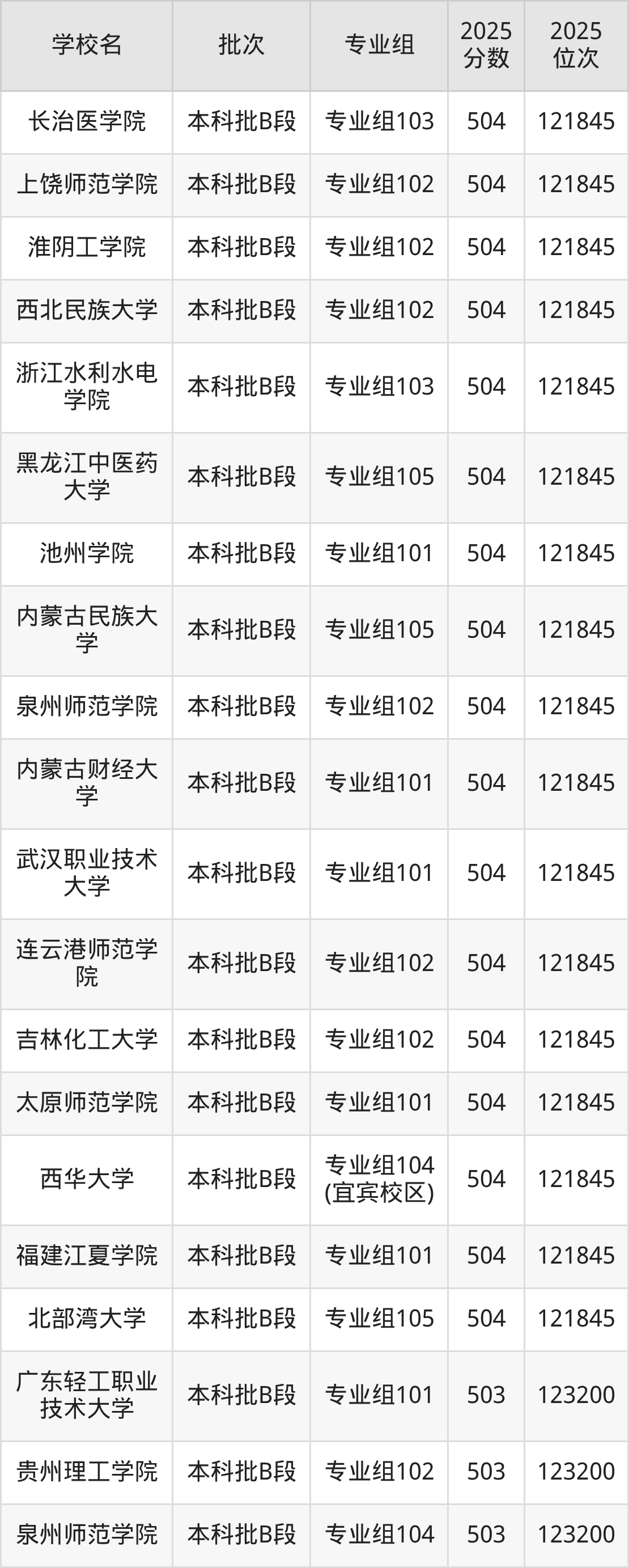 这些都是2026年高考物理类121846名~123200名考生可以报考的大学,更多学校名单如下表所示: