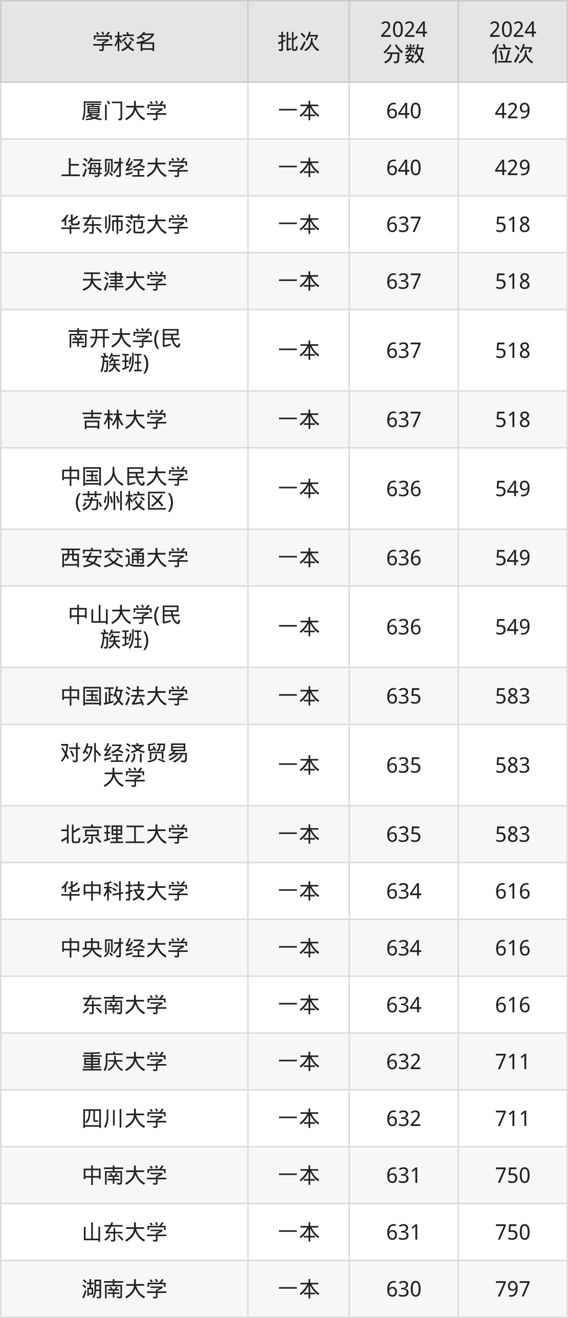 这些都是2025年高考文科893名~931名考生可以报考的大学,更多学校名单如下表所示: