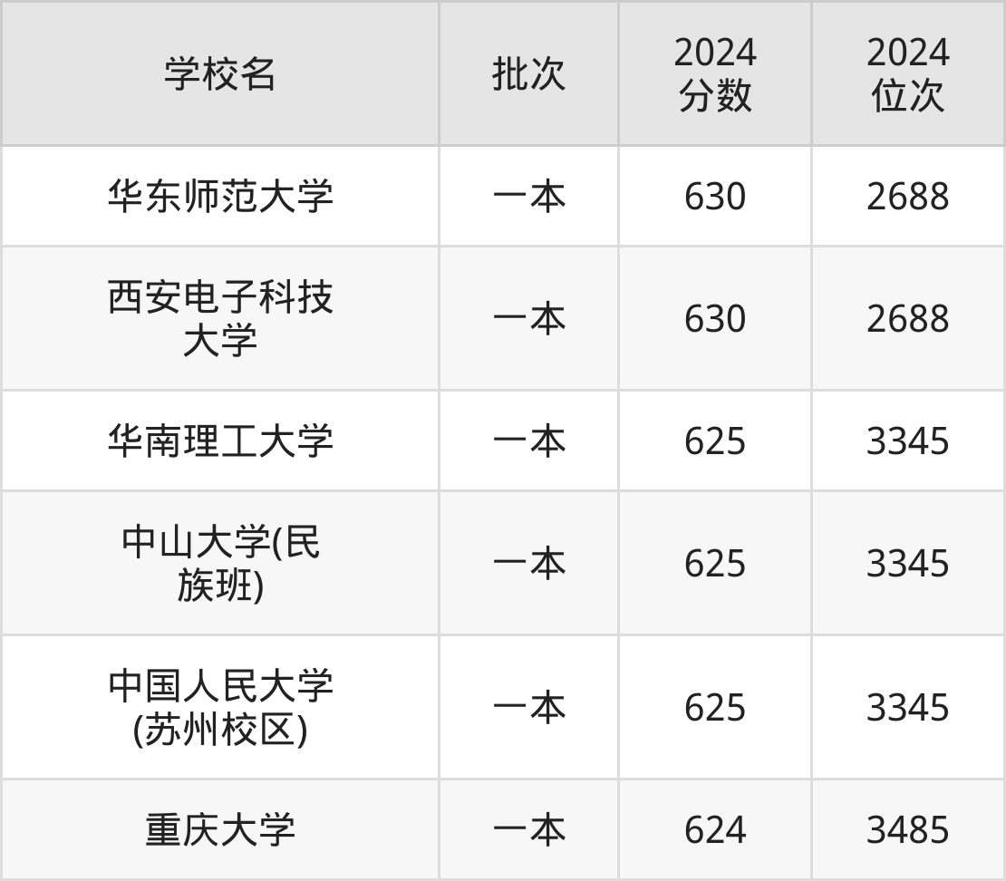 这些都是2025年高考理科2932名~3059名考生可以报考的大学,更多学校名单如下表所示: