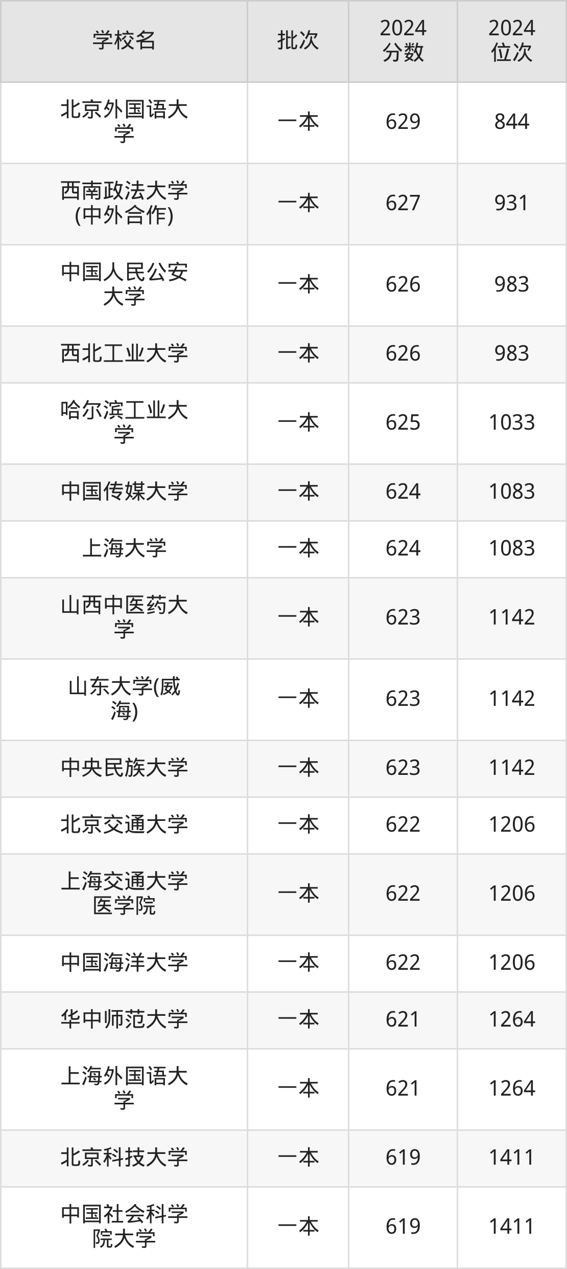 另外录取位次低于该区间(较稳妥)的有中国人民公安大学(983名)、西北工业大学(983名)等;录取位次高于该区间(可冲)的有北京外国语大学(844名)、湖南大学(797名)等。