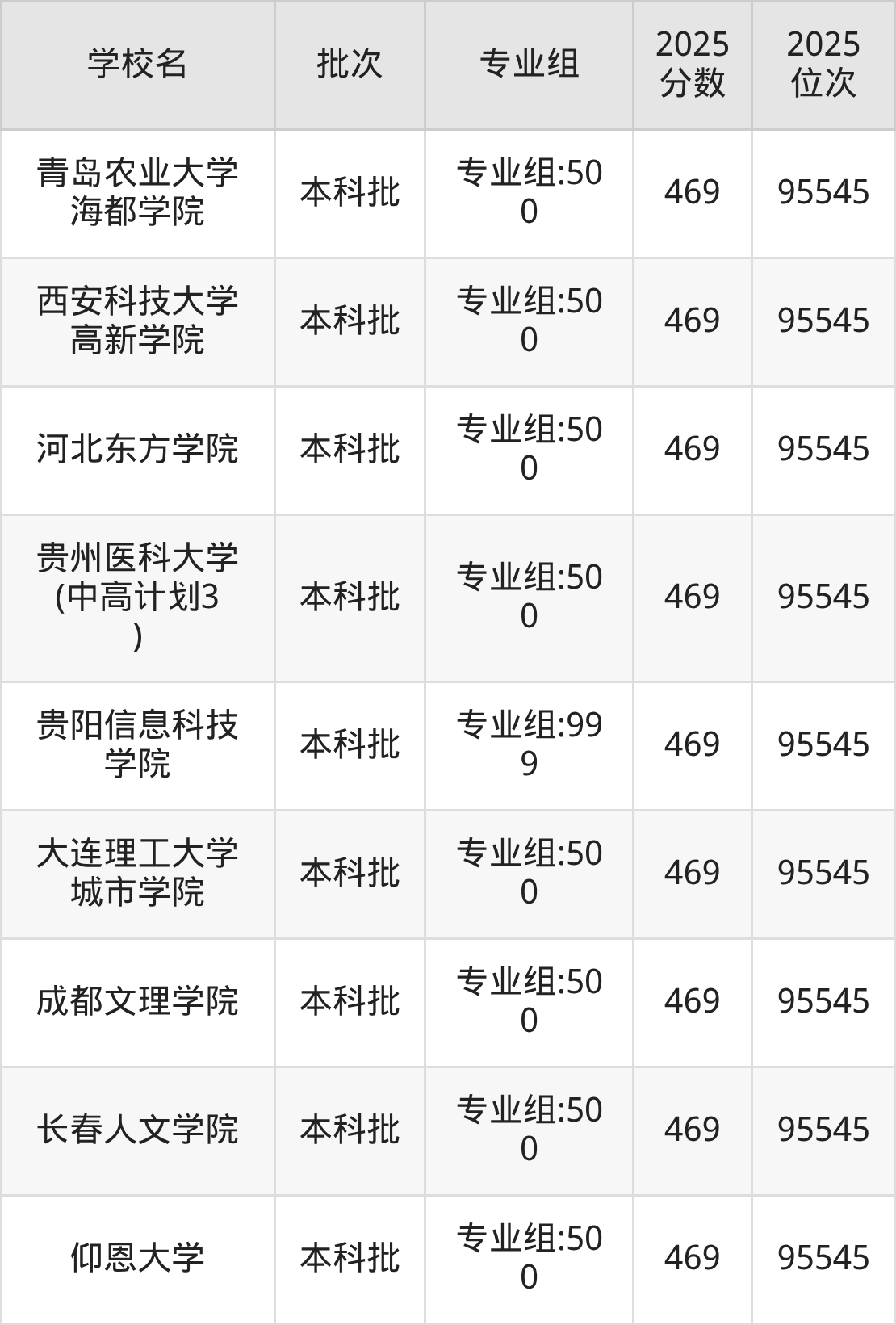 这些都是2026年高考物理类94713名~95545名考生可以报考的大学,更多学校名单如下表所示: