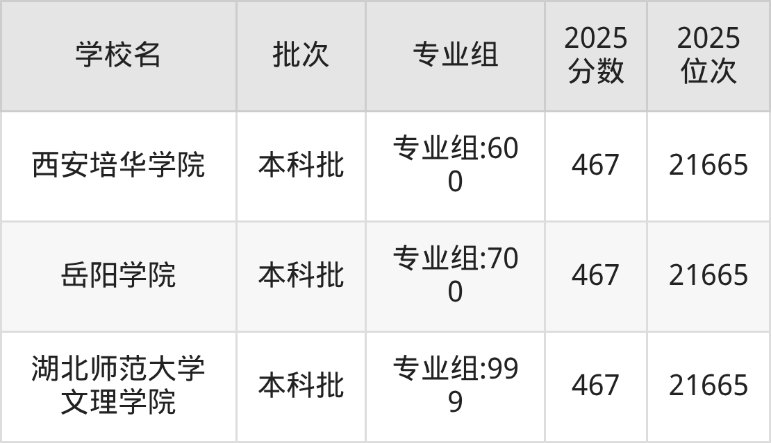 这些都是2026年高考历史类20966名~21192名考生可以报考的大学,更多学校名单如下表所示: