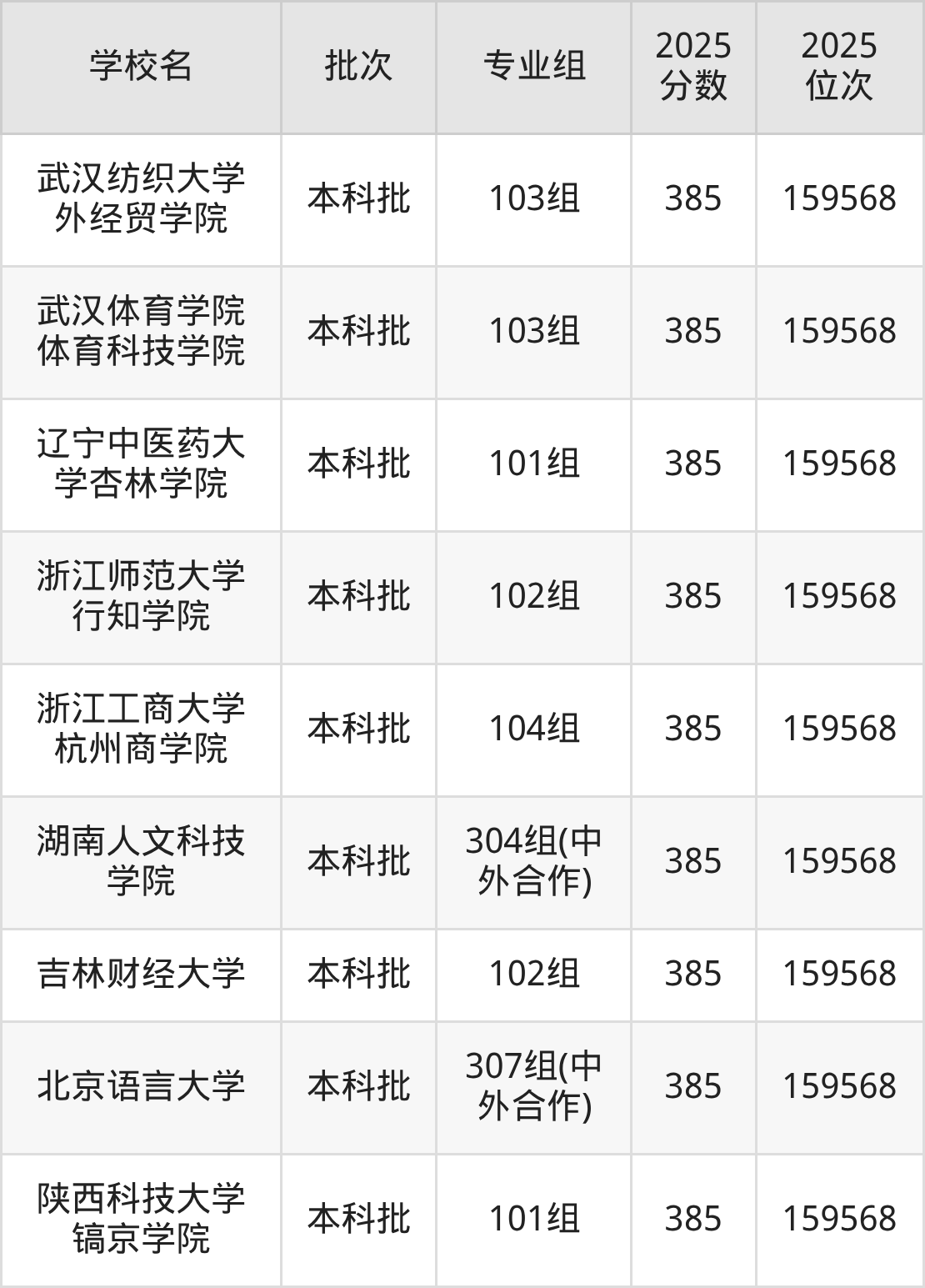 2025年广西高考物理类385分(158596名~159568名)能上的大学有北京语言大学307组(中外合作)、吉林财经大学102组、湖南人文科技学院304组(中外合作)、吉林外国语大学152组等。