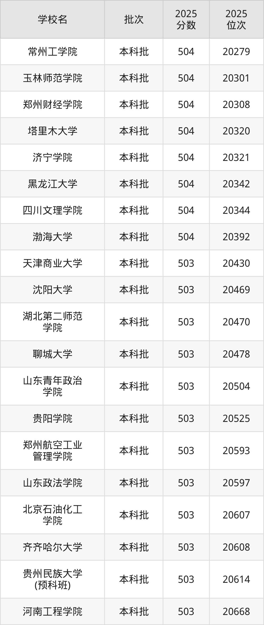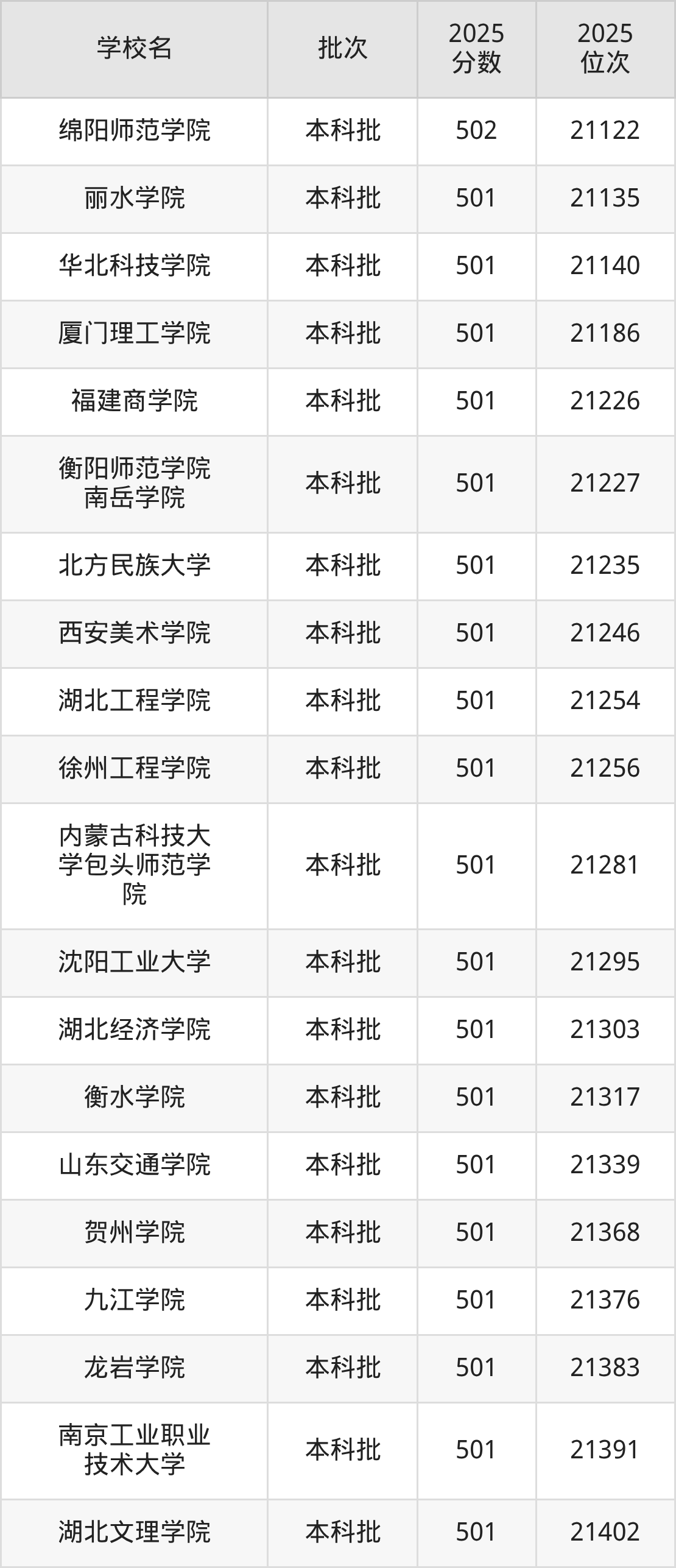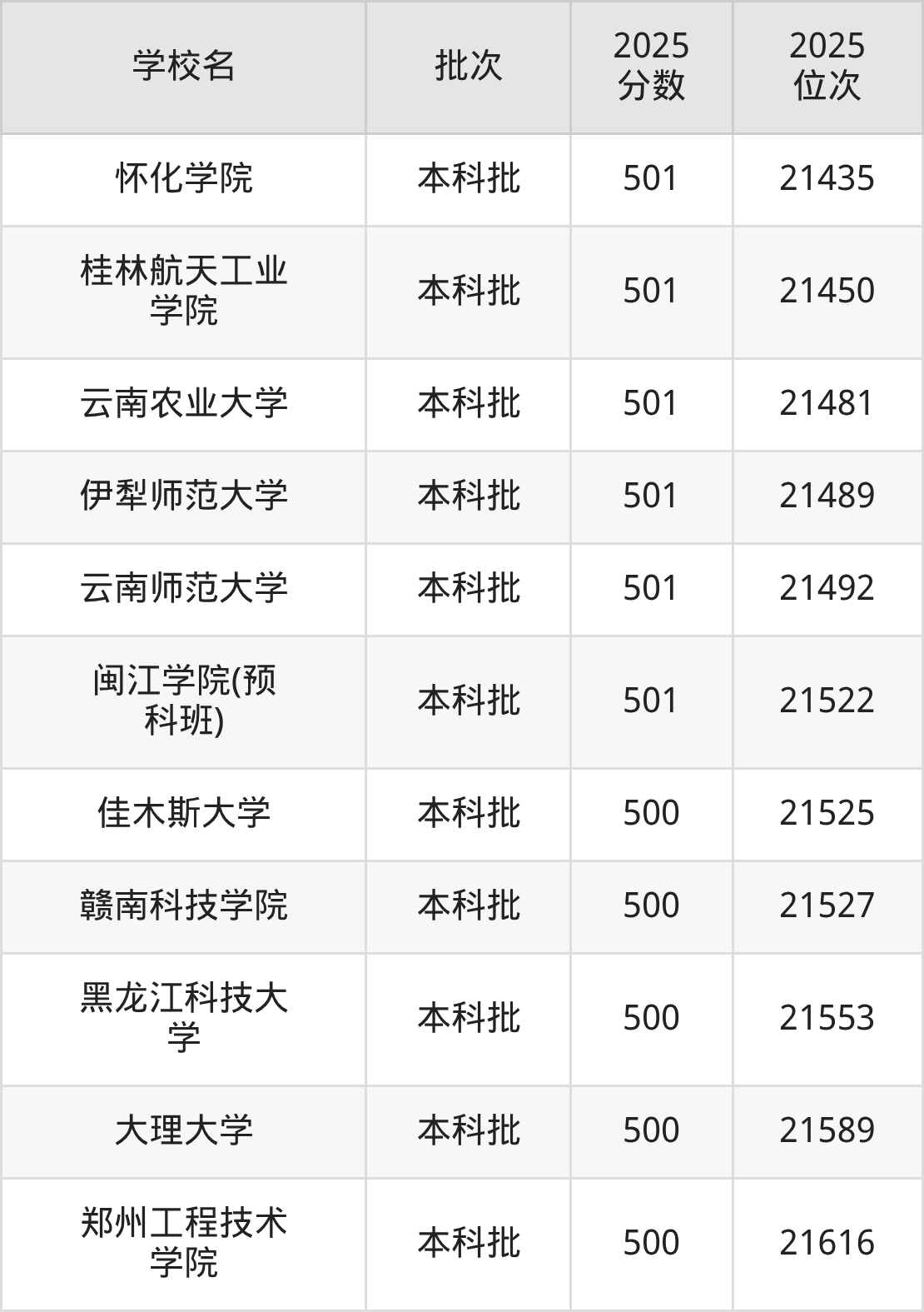 这些都是2026年高考历史类20765名~21129名考生可以报考的大学,更多学校名单如下表所示: