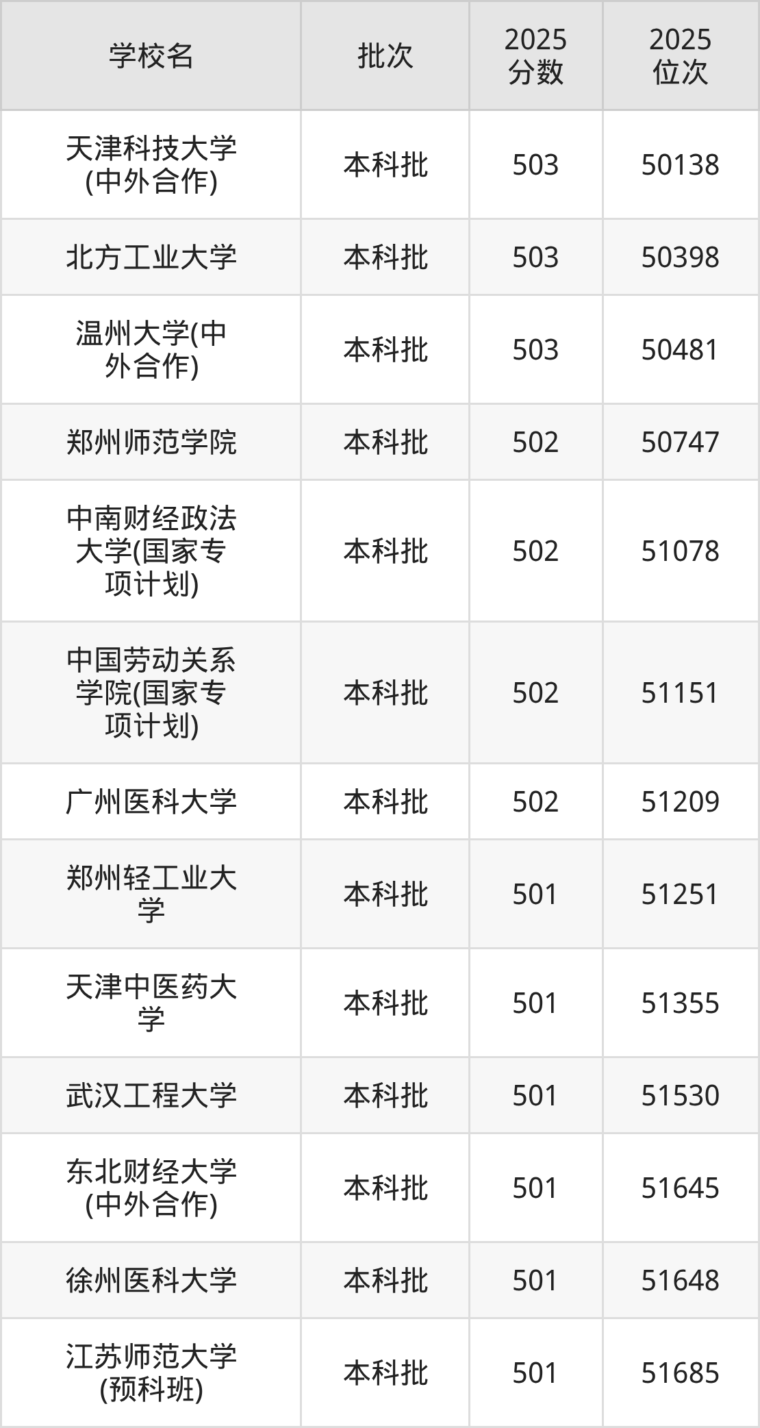 这些都是2026年高考物理类50531名~51240名考生可以报考的大学,更多学校名单如下表所示: