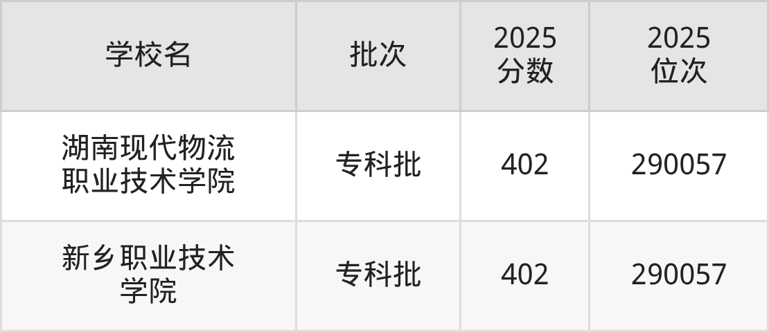 这些都是2026年高考物理类289152名~290057名考生可以报考的大学,更多学校名单如下表所示: