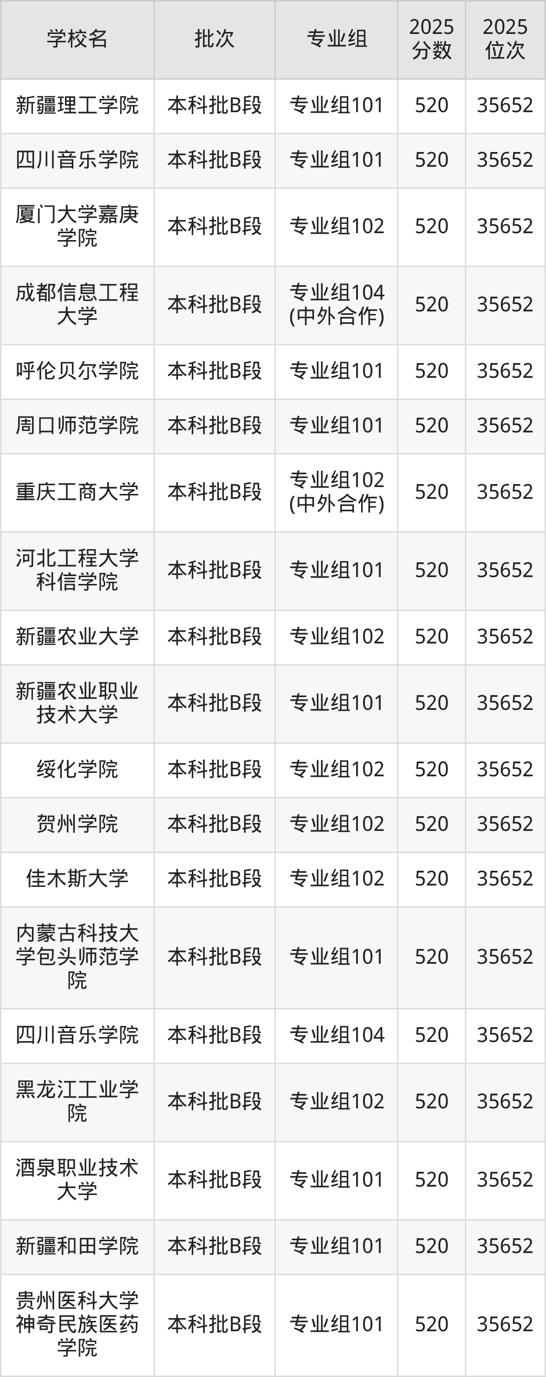 2025年四川高考历史类520分(35018名~35652名)能上的大学有厦门大学嘉庚学院专业组102、四川音乐学院专业组101、呼伦贝尔学院专业组101、周口师范学院专业组101等。