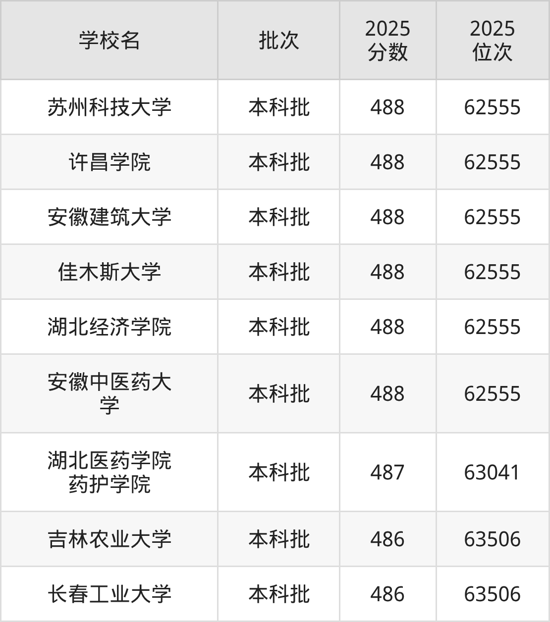 2025年辽宁高考物理类486分(63042名~63506名)能上的大学有吉林农业大学、长春工业大学。