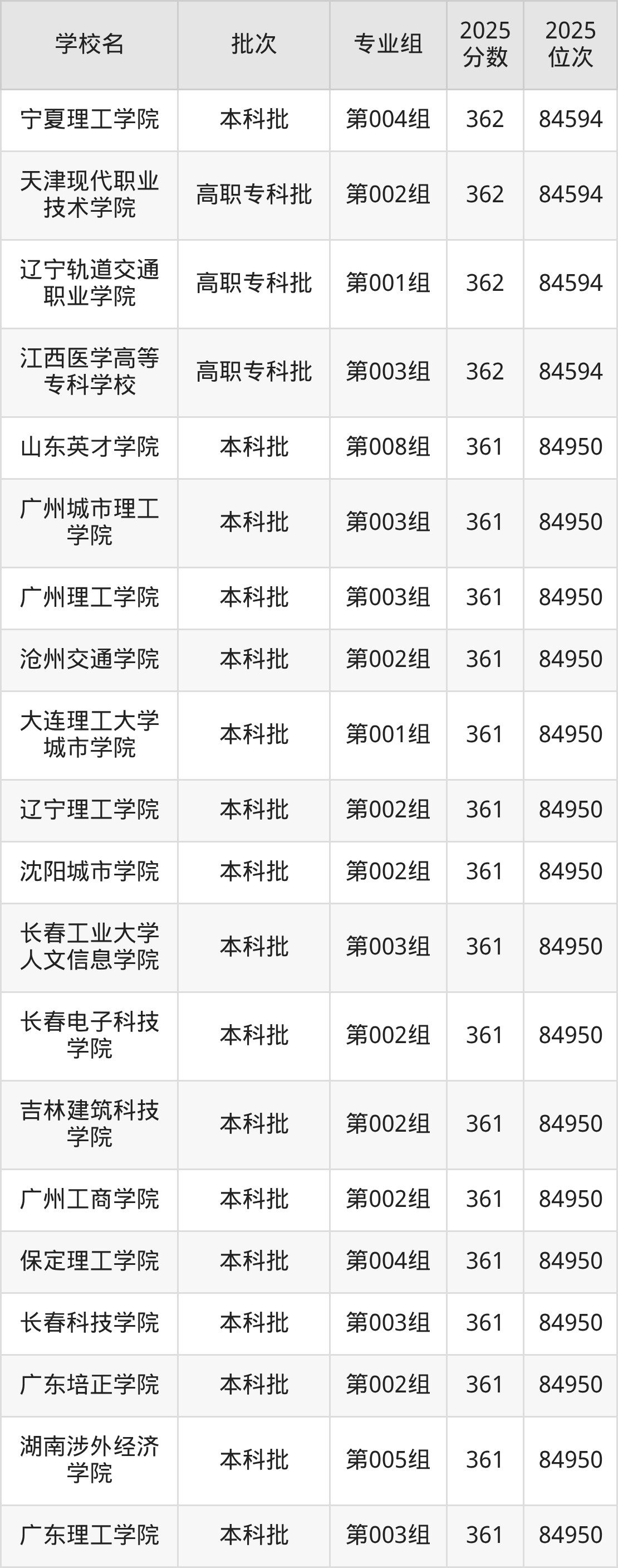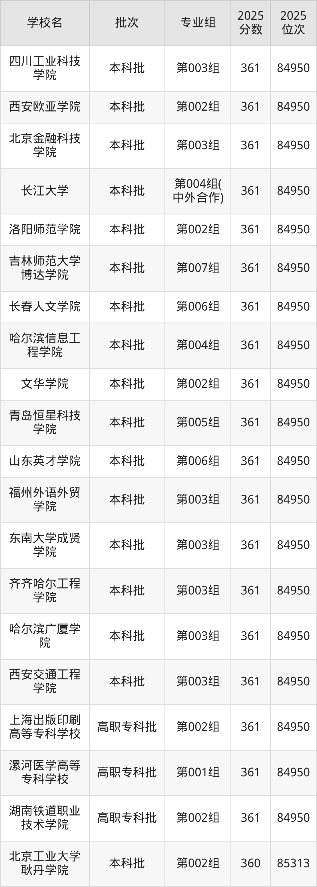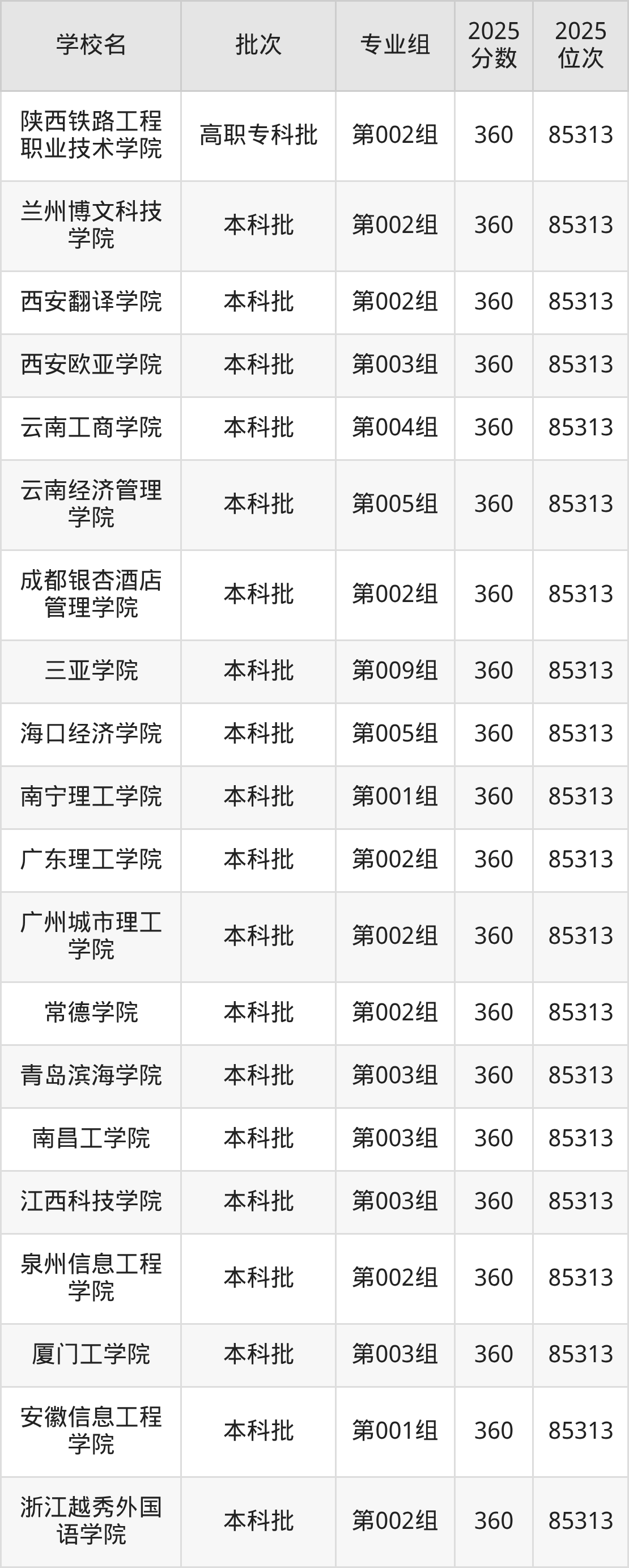 这些都是2026年高考物理类84951名~85313名考生可以报考的大学,更多学校名单如下表所示: