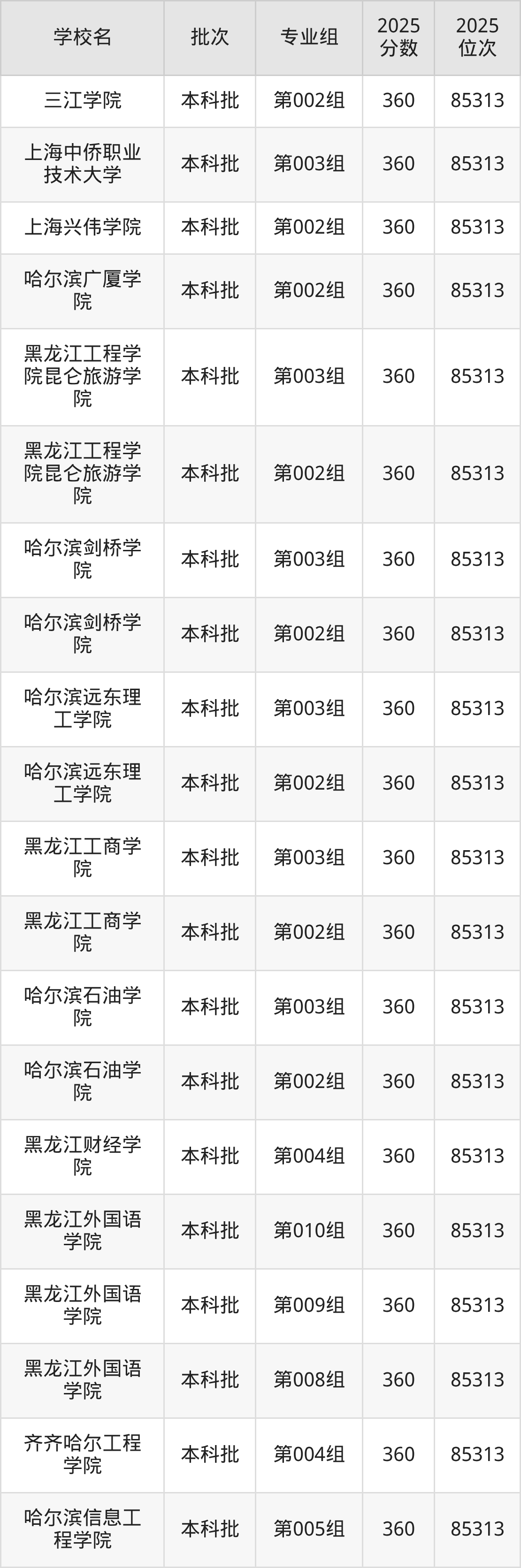 2025年黑龙江高考物理类360分(84951名~85313名)能上的大学有哈尔滨师范大学第119组、桂林旅游学院第006组(中外合作)、北京工业大学耿丹学院第002组、天津仁爱学院第004组等。