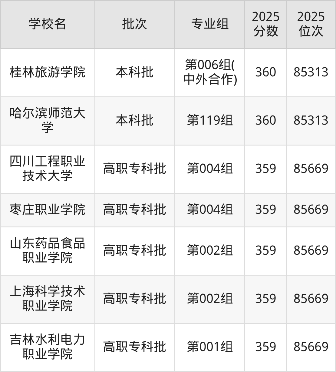 黑龙江高考360分:历史类排名31991位、物理类排名85313位。该分数位次对应能上的大学历史类有西安工商学院第002组、山西职业技术学院第001组;物理类有哈尔滨师范大学第119组、桂林旅游学院第006组(中外合作),更多名单如下文所示,2026届考生可参考。