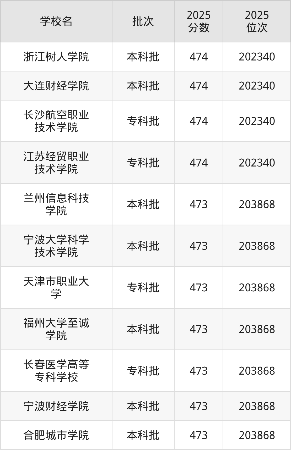2025年河北高考物理类473分(202341名~203868名)能上的大学有合肥城市学院、宁波财经学院、兰州信息科技学院、长春医学高等专科学校等。