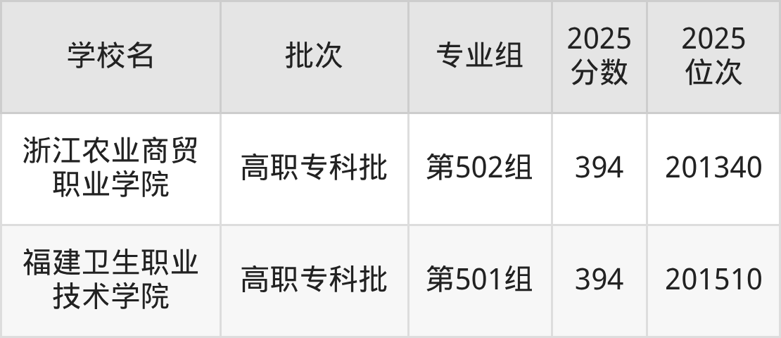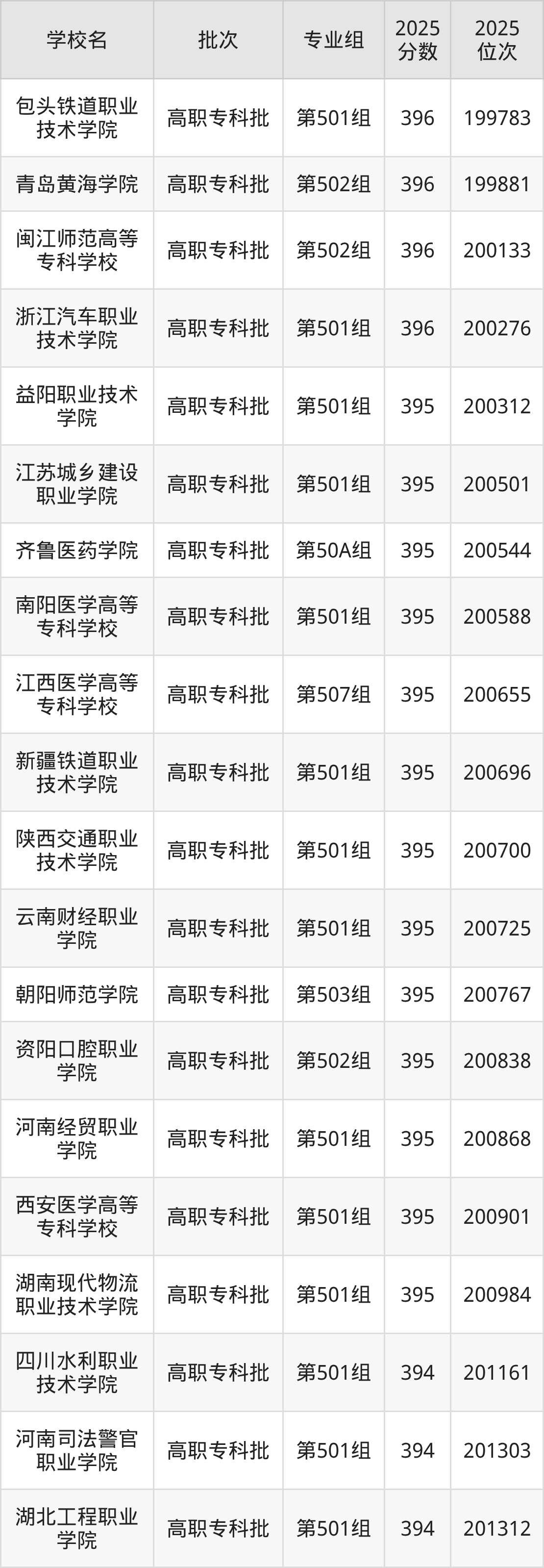 另外录取位次低于该区间(较稳妥)的有四川水利职业技术学院第501组(201161名)、河南司法警官职业学院第501组(201303名)等;录取位次高于该区间(可冲)的有浙江汽车职业技术学院第501组(200276名)、闽江师范高等专科学校第502组(200133名)等。