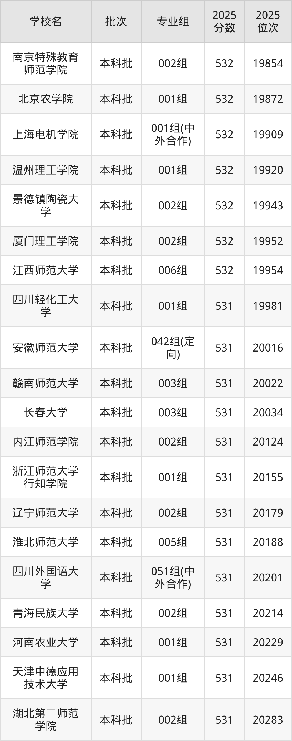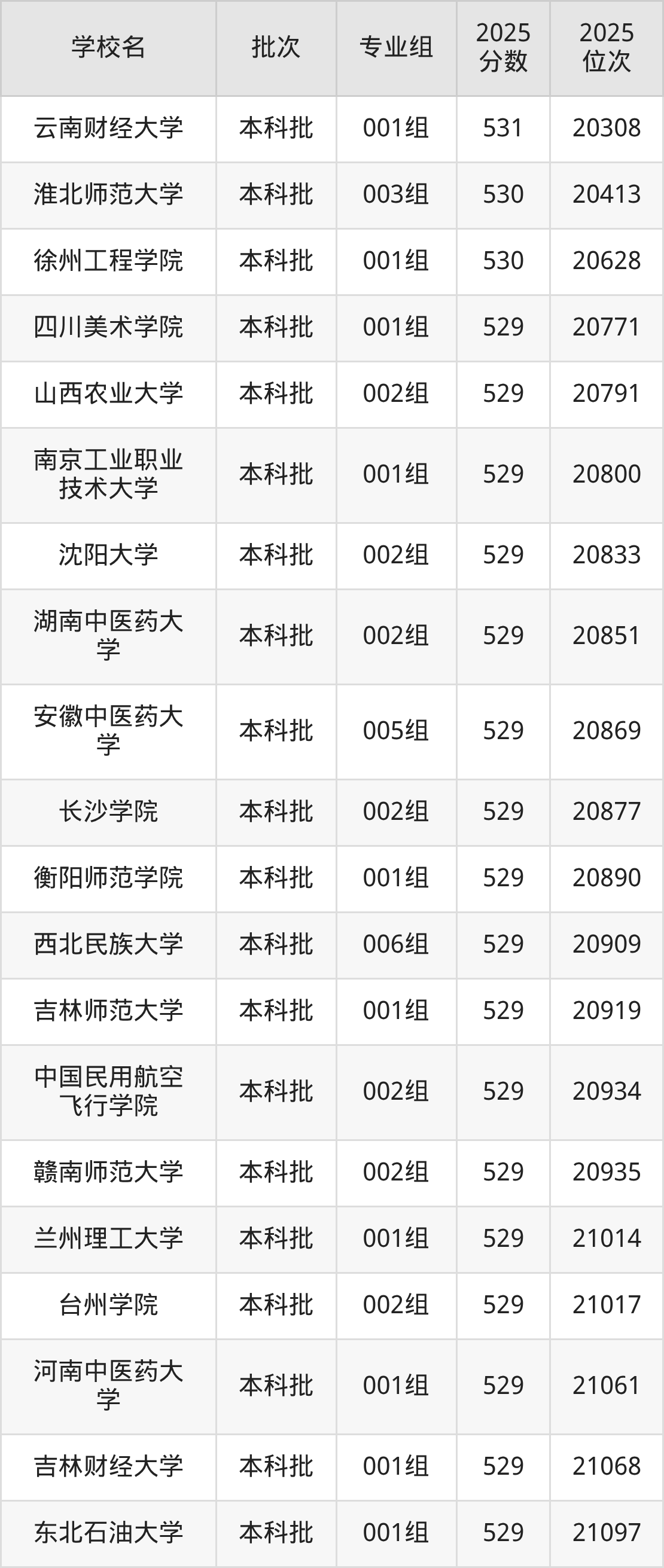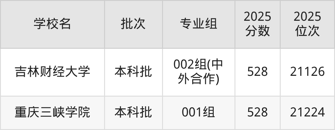 这些都是2026年高考历史类20339名~20729名考生可以报考的大学,更多学校名单如下表所示: