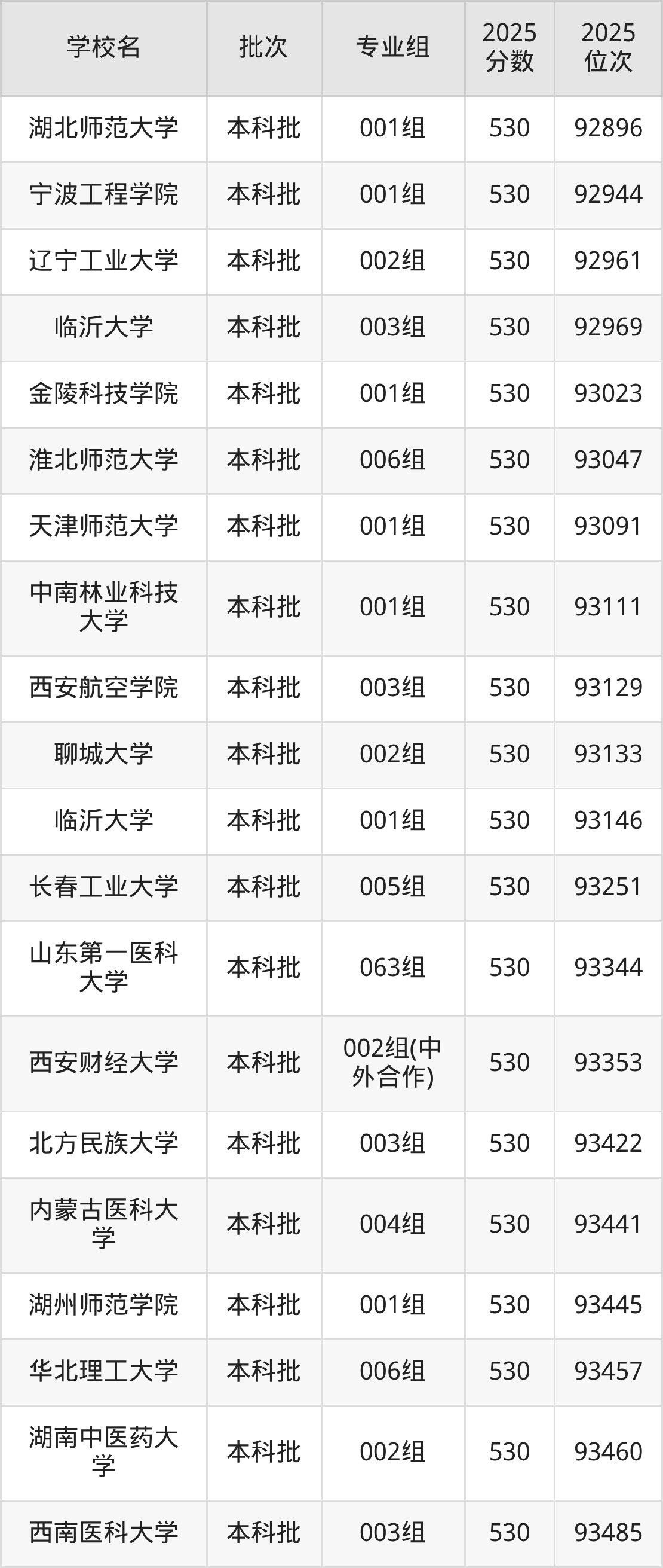 二、安徽530分位次排名能上的大学