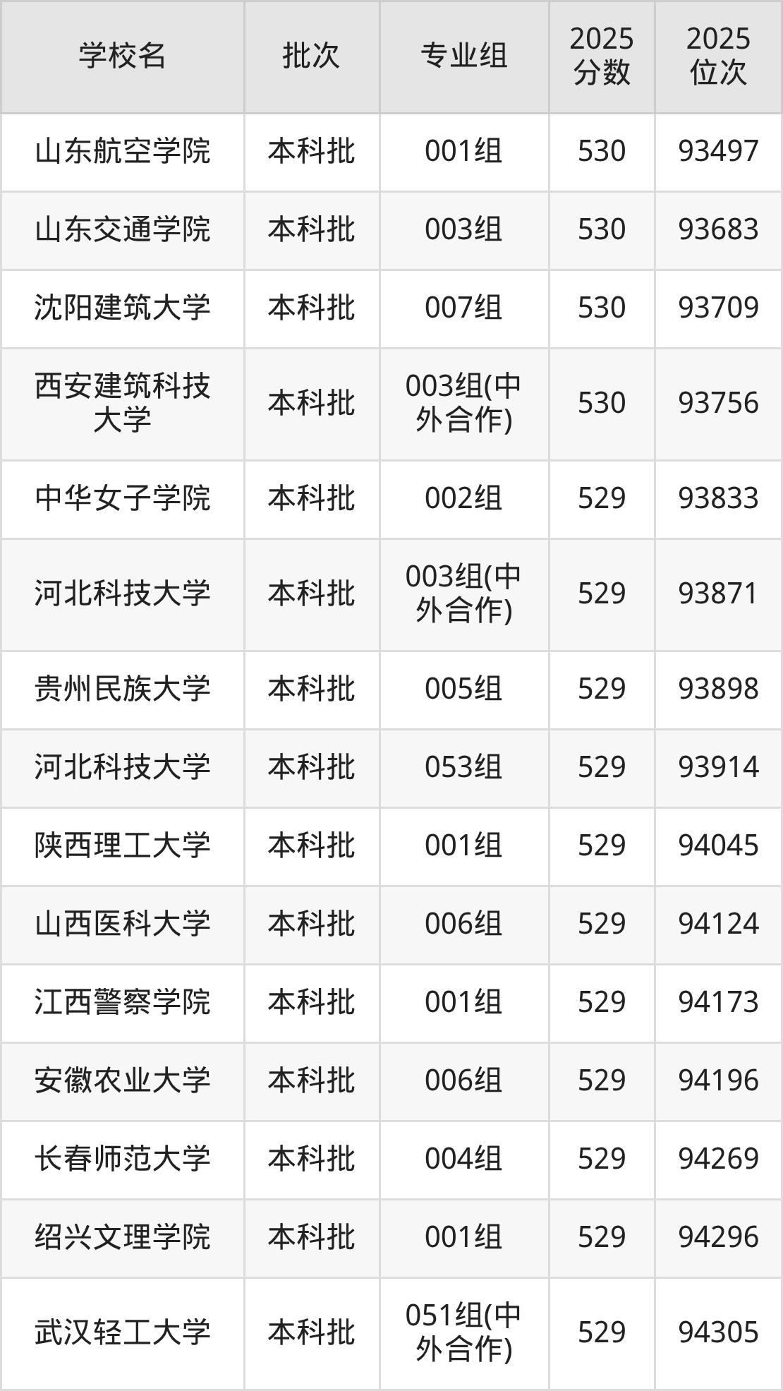 另外录取位次低于该区间(较稳妥)的有中华女子学院002组(93833名)、河北科技大学003组(中外合作)(93871名)等;录取位次高于该区间(可冲)的有北华航天工业学院001组(92552名)、广西科技大学004组(92498名)等。
