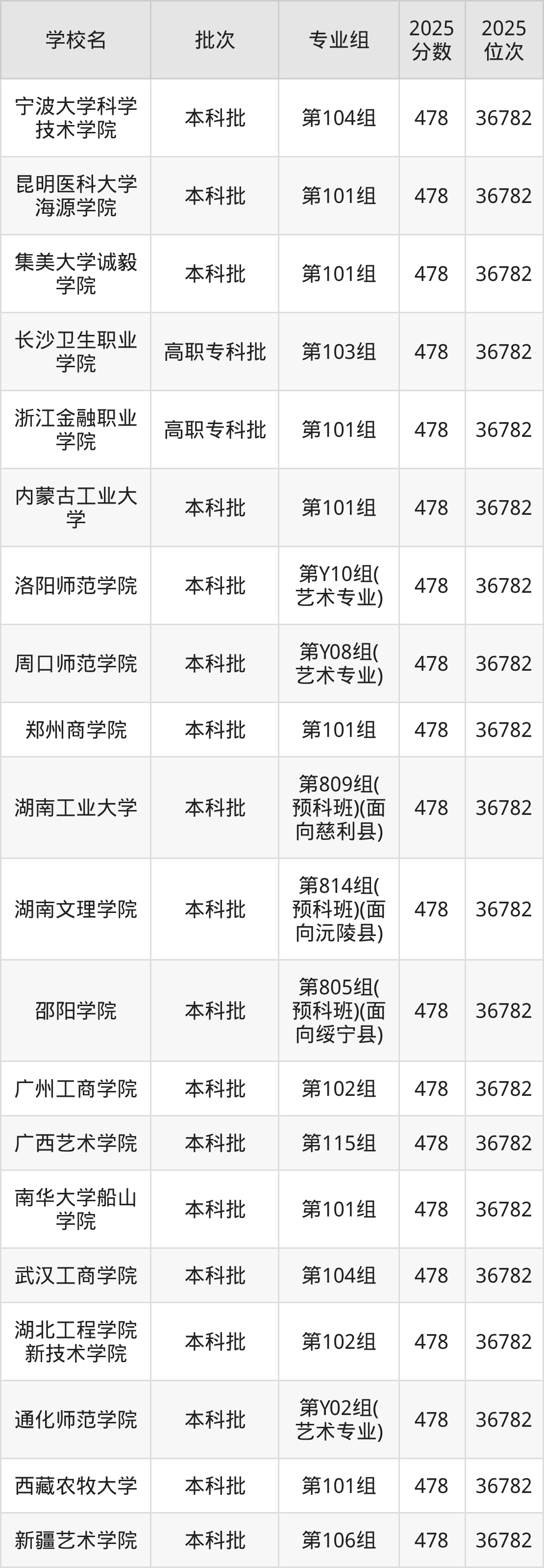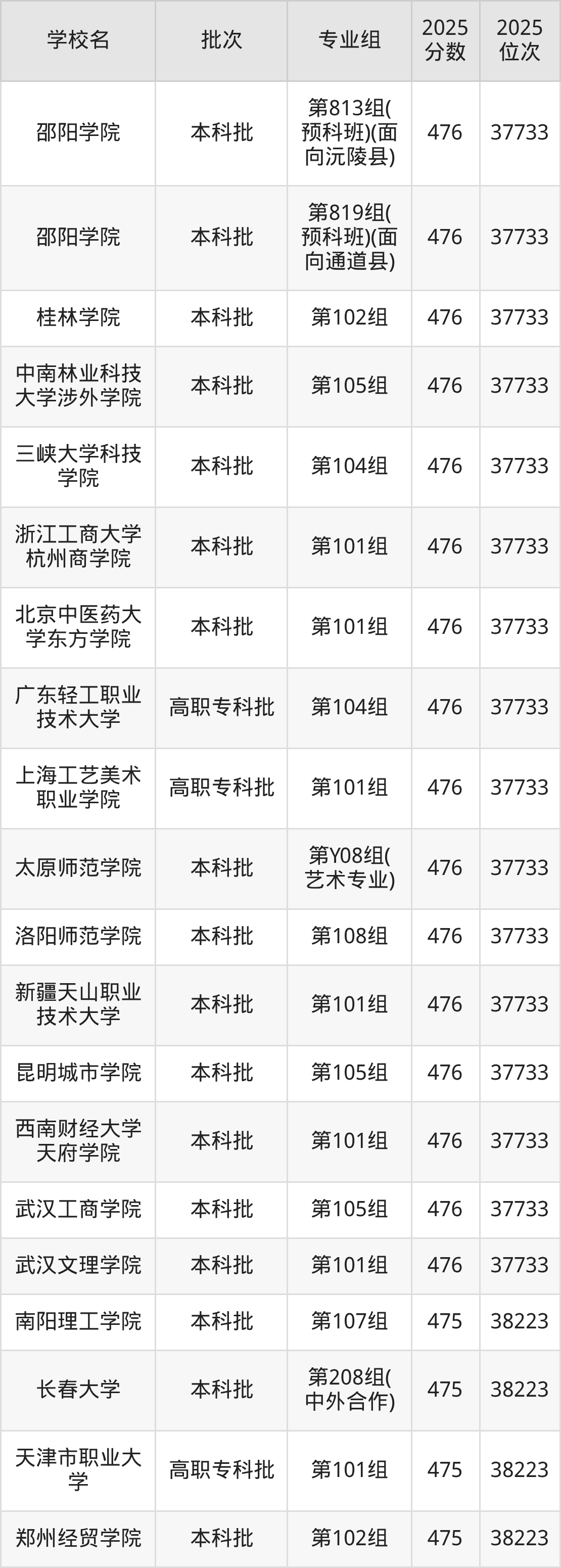 2025年湖南高考历史类476分(37271名~37733名)能上的大学有北京中医药大学东方学院第101组、浙江工商大学杭州商学院第101组、洛阳师范学院第108组、郑州工商学院第101组等。