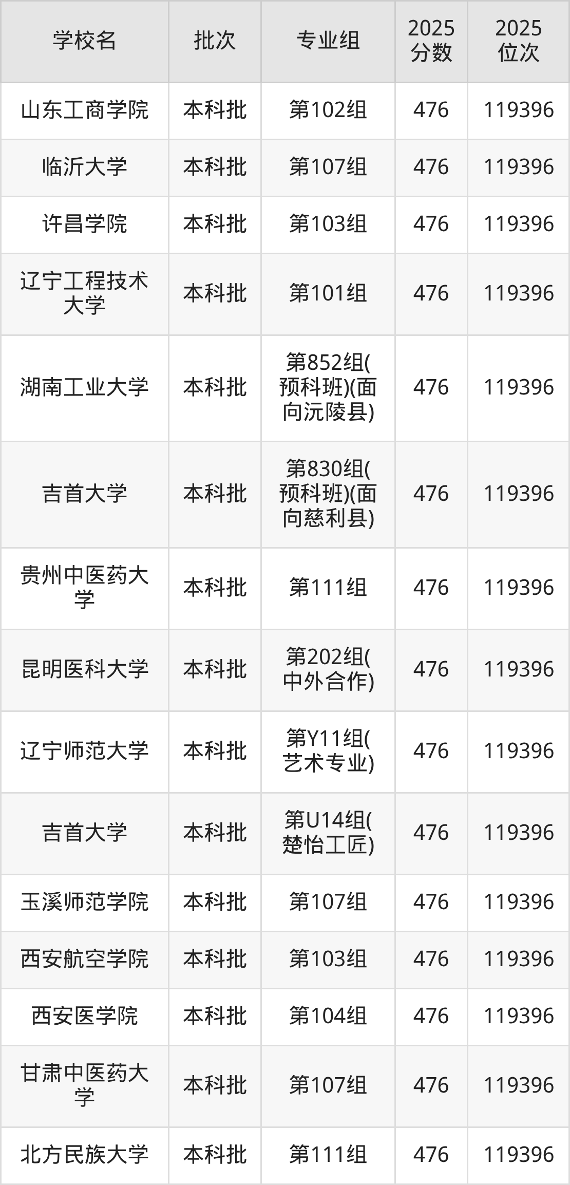 这些都是2026年高考物理类118120名~119396名考生可以报考的大学,更多学校名单如下表所示: