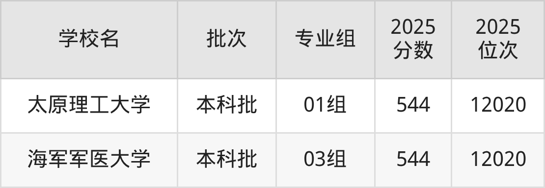 这些都是2026年高考11284名~11525名考生可以报考的大学,更多学校名单如下表所示: