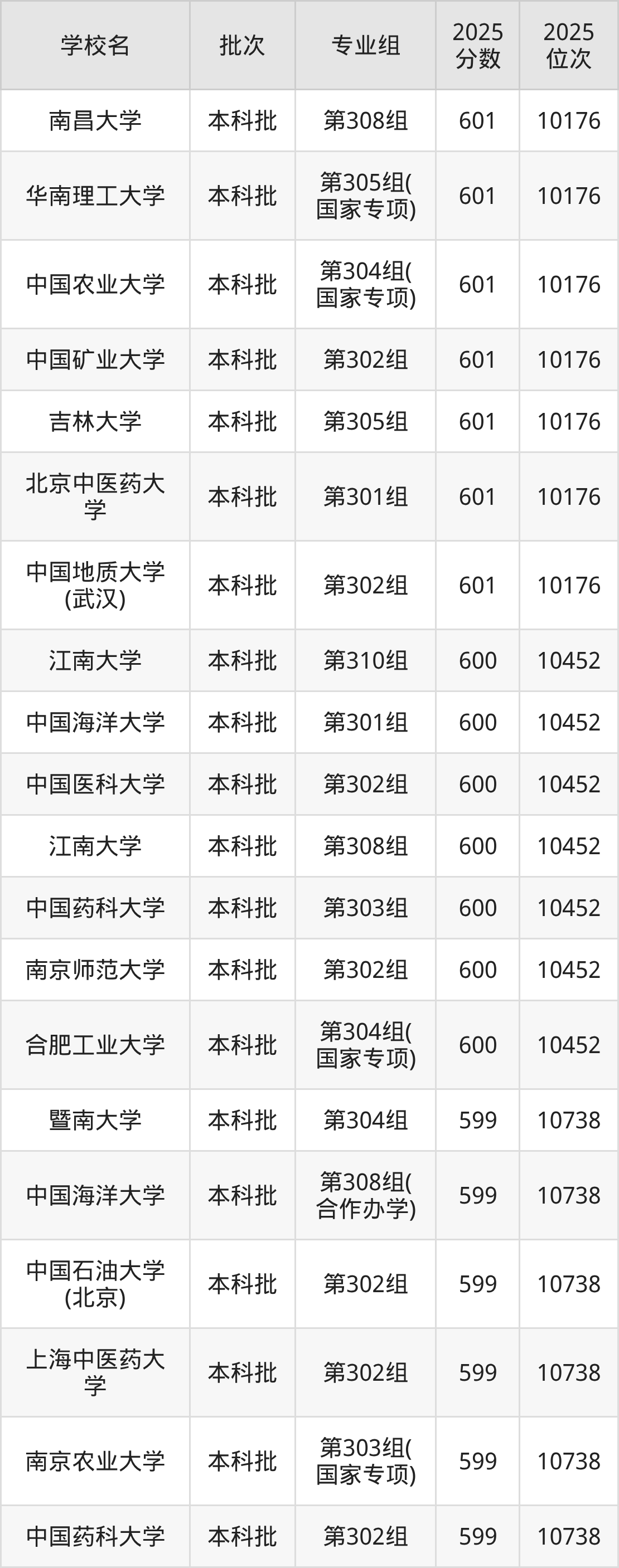 另外录取位次低于该区间(较稳妥)的有兰州大学第301组(10984名)、华中师范大学第309组(10984名)等;录取位次高于该区间(可冲)的有中国医科大学第302组(10452名)、江南大学第308组(10452名)等。