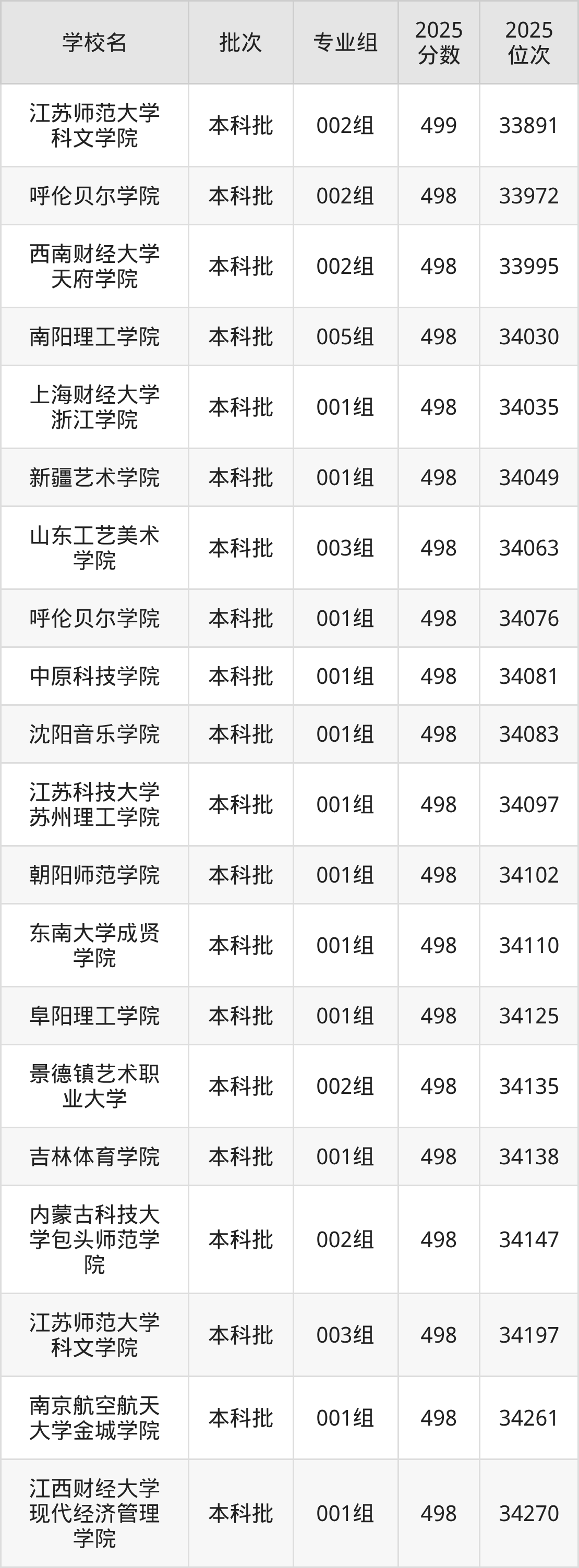 这些都是2026年高考历史类34385名~34845名考生可以报考的大学,更多学校名单如下表所示:
